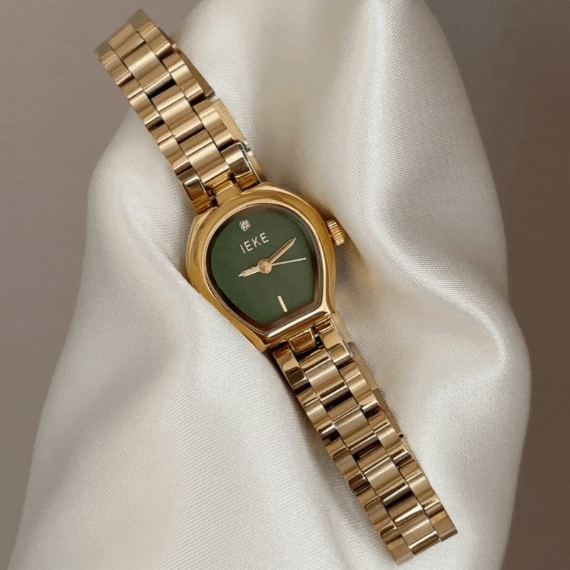 Urban Fashion Arched Green Dial Watch - Gold Stainless Steel Quartz Bracelet
