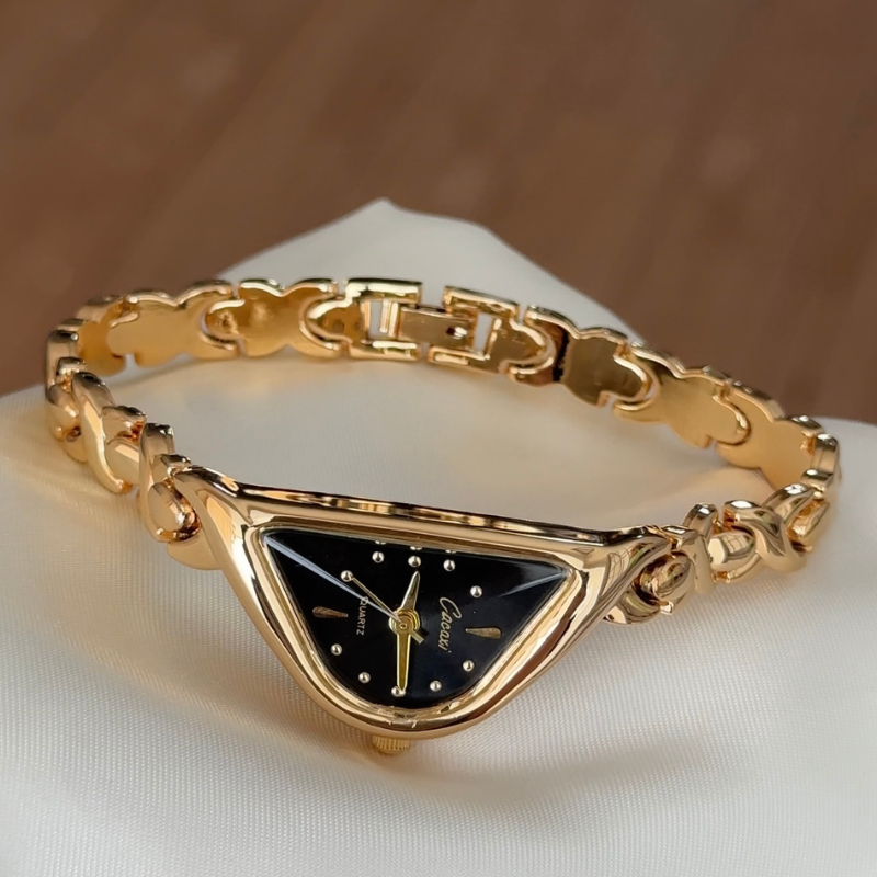 Powered by quartz movement, it ensures precise timekeeping in its arched silhouette. The striking black and gold contrast creates an enchanting accessory that transitions seamlessly from cultural events to formal occasions. Masterfully merging historical inspiration with contemporary craftsmanship, this timepiece offers timeless elegance for discerning collectors.