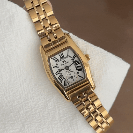 Experience the perfect fusion of retro charm and modern elegance with our Vintage Elegant Square White Dial Watch. This exquisite timepiece features a pristine white dial encased in a polished gold-toned frame, complemented by a matching gold bracelet that exudes timeless sophistication. Powered by precise quartz movement, it offers reliable timekeeping while serving as a stunning accessory for any occasion. The clean lines and classic square design pay homage to vintage aesthetics, making it a versatile piece that transitions seamlessly from day to night.