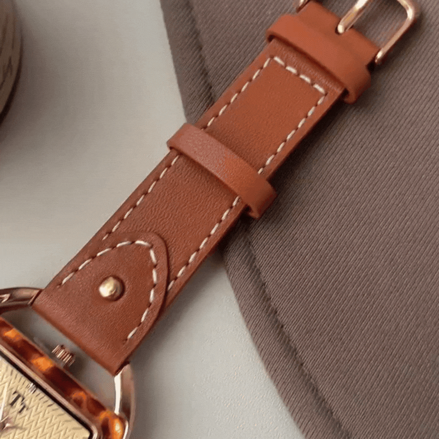 Introductie van de Amber Eclipse-tijdmeter, een statement van moderne elegantie en individualiteit. Met een warme amberkleurige band van echt leer en een artistieke, onregelmatig gevormde halvemaanvormige wijzerplaat is dit quartzhorloge de perfecte mix van modieus design en tijdloze verfijning. Ideaal voor wie op zoek is naar een uniek en veelzijdig accessoire dat zijn verfijnde smaak aanvult.