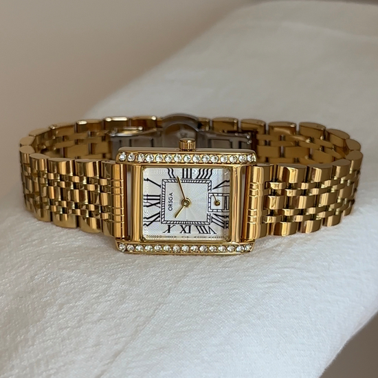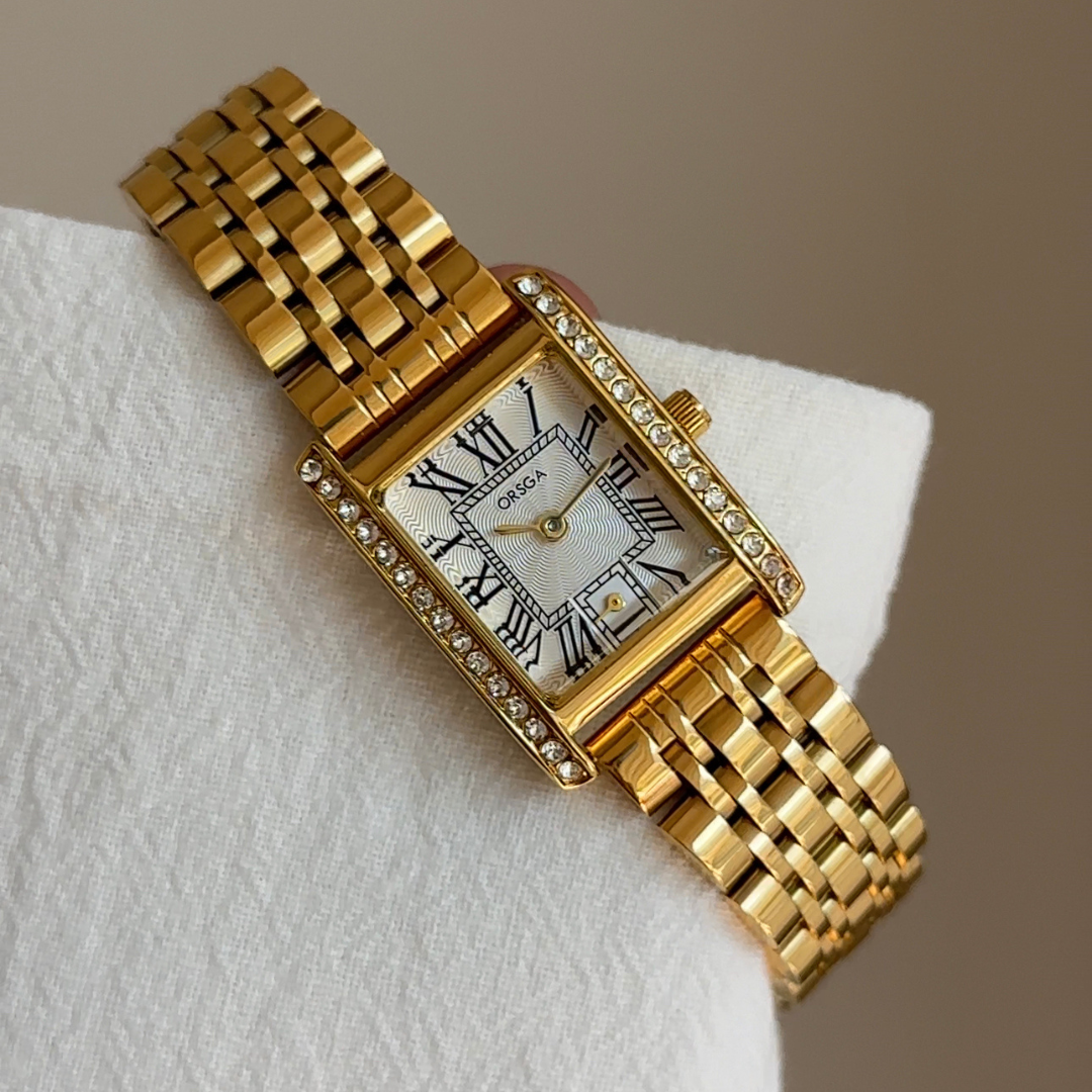 Shine with timeless elegance wearing this classic women’s quartz watch. Designed with a polished gold bracelet strap, a sleek white rectangular dial, and a diamond-accented case, it perfectly blends sophistication and fashion. Ideal for daily wear, office looks, or evening occasions, this watch is both a stylish accessory and a reliable timepiece.