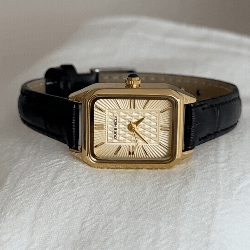 Vintage Elegant Black Watch - Rectangular Gold Dial &Genuine Leather Strap