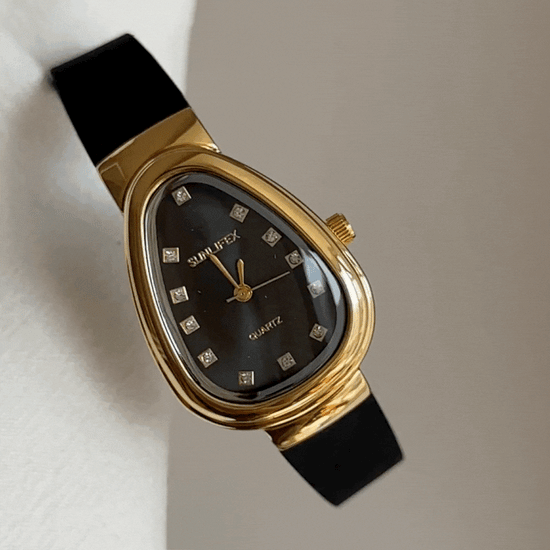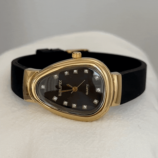 Black Women Quartz Watch Silicone Strap Gold Snake Head Case Black Diamond Dial Vintage Luxury Style – Serpenti