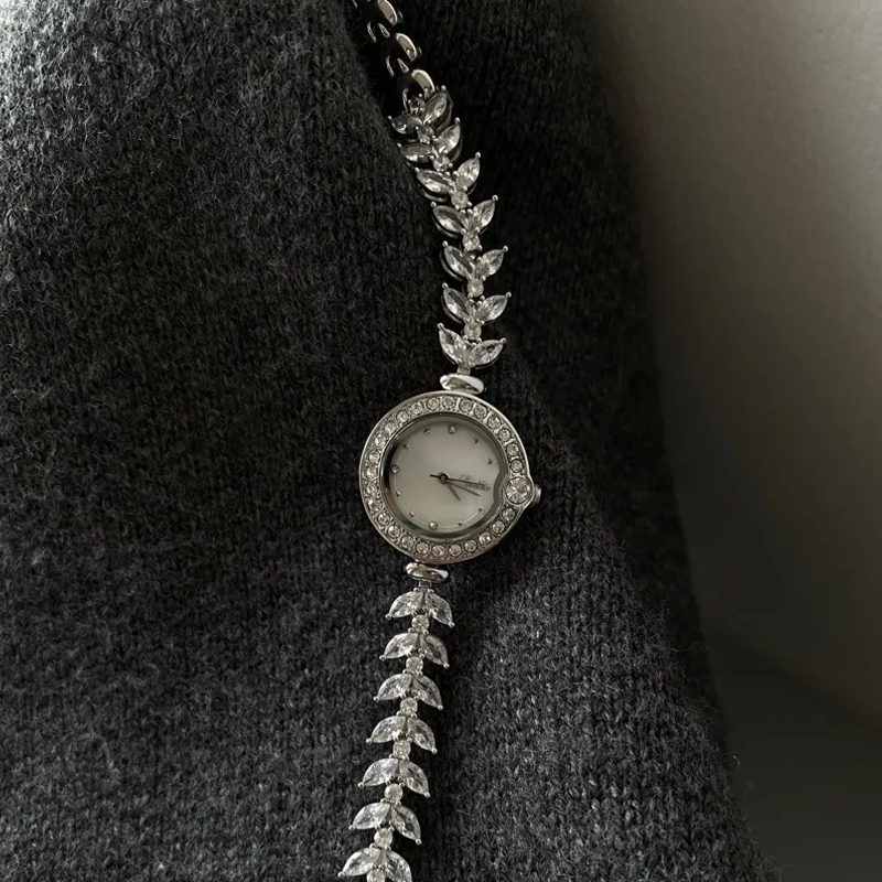 Introductie van de Mermaid Elegance Horloge, waar luxe en de aantrekkingskracht van de oceaan samenkomen. Dit prachtige horloge heeft een glinsterende zilveren kast, versierd met sprankelende diamanten, die doen denken aan de stralende schoonheid van een zeemeermin. De elegante parelmoeren wijzerplaat zorgt voor een zachte, iriserende gloed en versterkt de algehele charme. Met zijn verfijnde ontwerp en verfijnde uitstraling straalt dit horloge lichtheid en gratie uit, perfect voor wie een vleugje luxe in zijn dagelijkse stijl wenst.