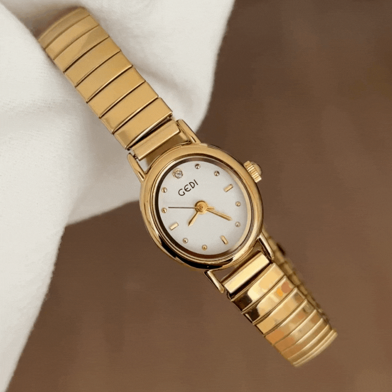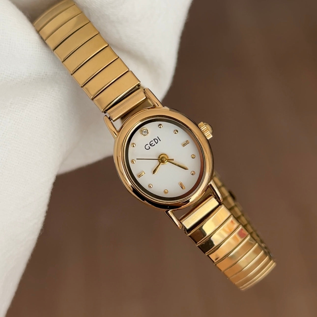 Classic Retro Oval White Dial Gold-Tone Case Stainless Steel Band Quartz Wristwatch