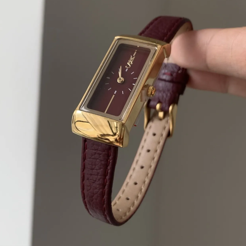Crimson Elegance -uurwerk: goud en Ancona rood rechthoekig horloge