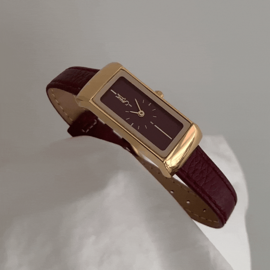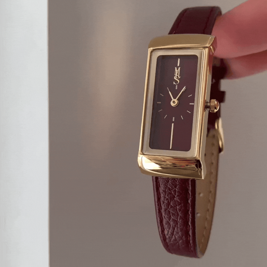 Maak kennis met het Crimson Radiance-horloge: een combinatie van gedurfde allure en tijdloze elegantie. Een rijke Ancona-rode leren band vormt een mooie aanvulling op een rechthoekige gouden kast, terwijl een dieprode wijzerplaat met Romeinse cijfers verfijnde schoonheid uitstraalt.