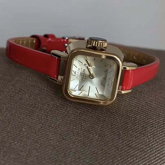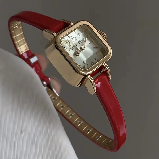 Crimson Sugar -uurwerk: Red Leather Mini Quartz Watch