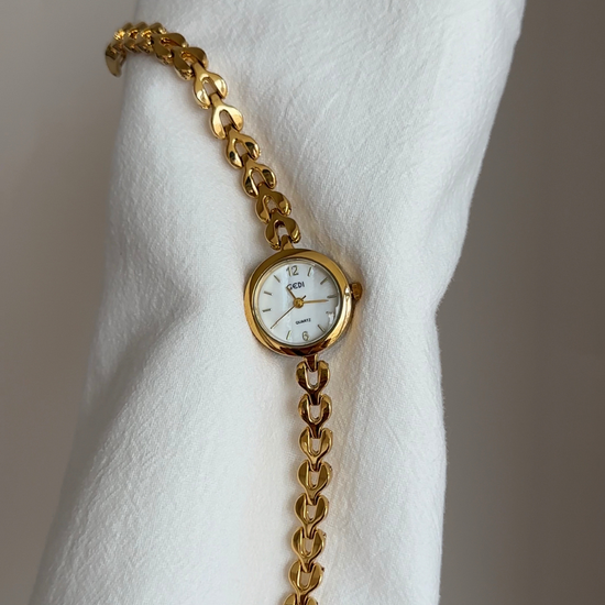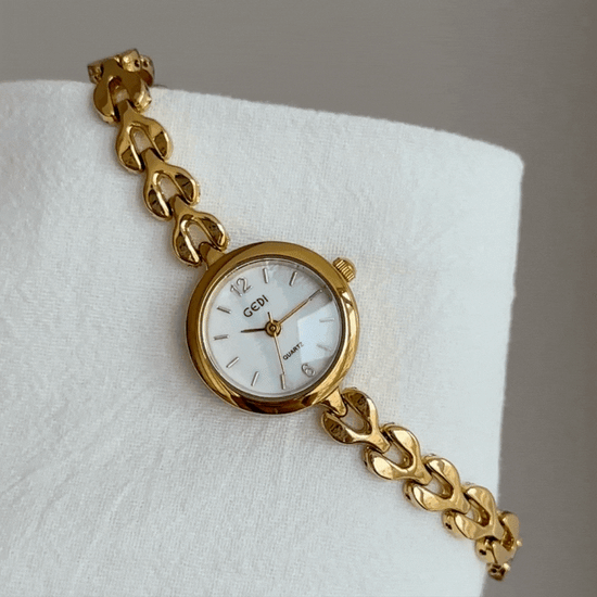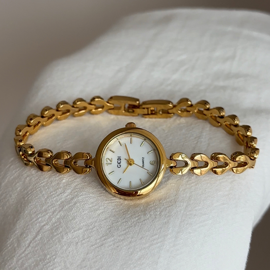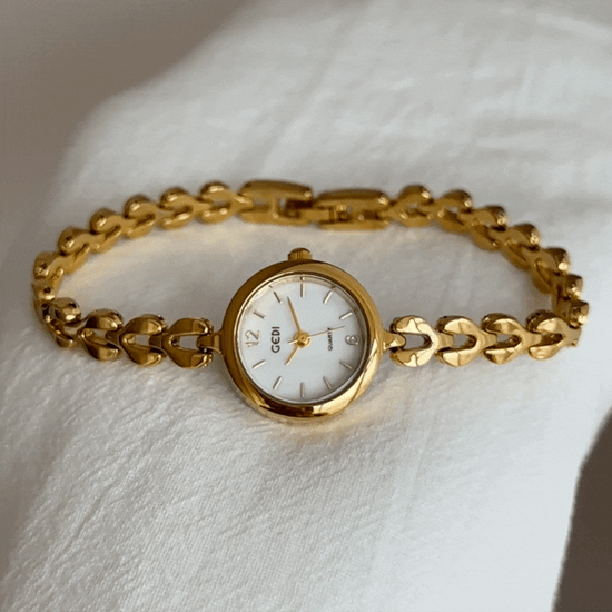 Dainty Minimalist Round Gold Bangle Watch with White Dial for Women - Golden Bloom