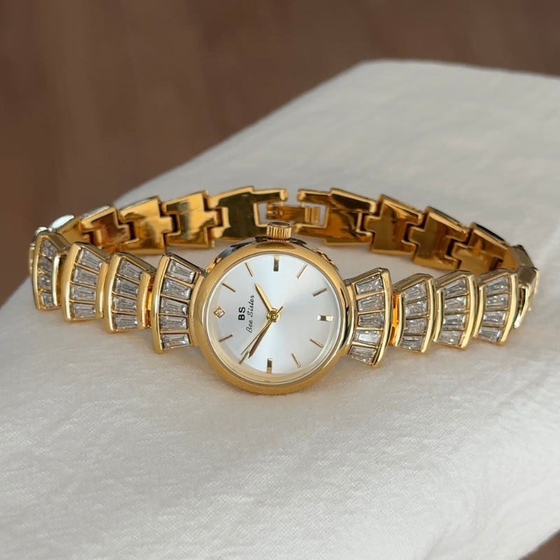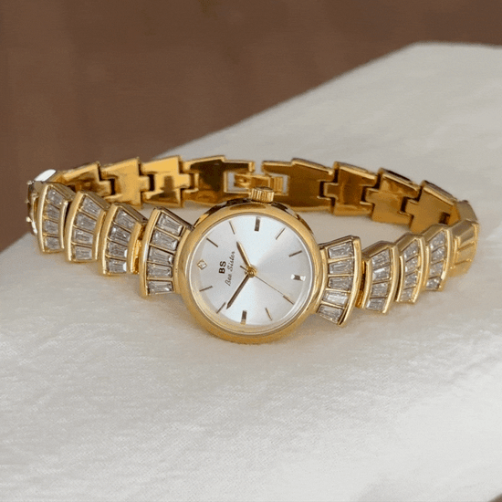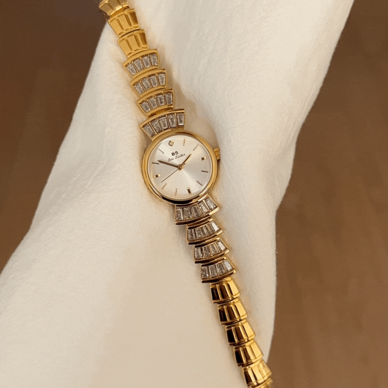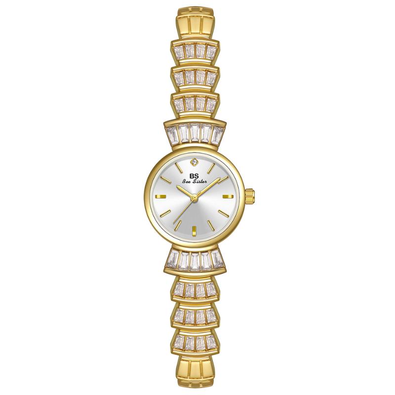 Discover the perfect harmony of modern minimalism and luxurious elegance in our quartz watch. It features a radiant silver dial framed in a contrasting gold-tone case, paired with an alloy bracelet adorned with sparkling crystal diamonds. This timepiece seamlessly blends clean aesthetics with exquisite details, crafted for those who value refined style and reliable precision. Versatile enough to transition effortlessly from daytime professional settings to evening social events, it's the essential accessory for the fashion-conscious individual.