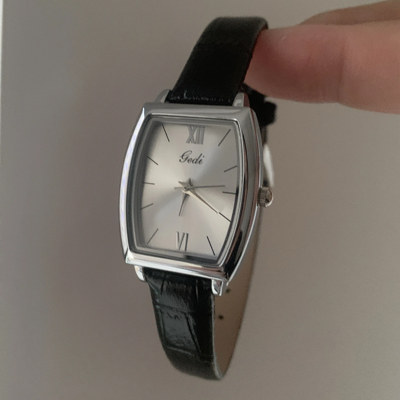 Introductie van de Executive Barrel-horloge, een verfijnde uiting van verfijning en stijl. Vervaardigd met een strakke zwarte leren band en een zilveren kast, biedt dit horloge een unieke mix van moderne elegantie en professionele charme. Het kenmerkende ontwerp van de kast valt op door de vloeiende rondingen, terwijl de klassieke zwart-zilveren kleurencombinatie zorgt voor een tijdloze, veelzijdige look. Perfect voor op kantoor of zakelijke bijeenkomsten, straalt dit horloge zelfvertrouwen en gratie uit, waardoor het het ultieme accessoire is voor de moderne professional. Begin de dag met de Executive Barrel-horloge, waar innovatie en traditie samenkomen.