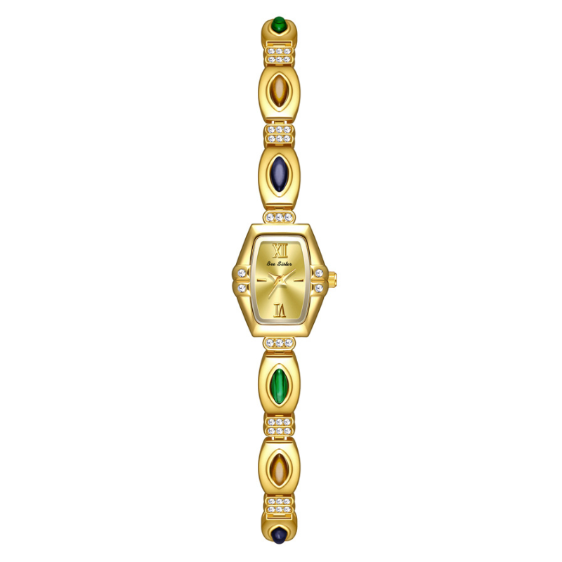 Refined yet artistic, the colorful stone details add a subtle charm to the elegant mini gold watch design—perfect for everyday sophistication or special moments.
