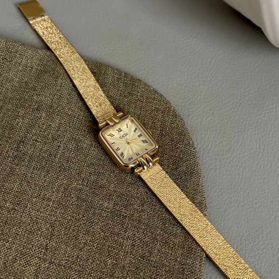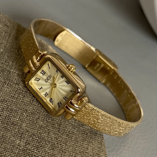 Dit quartzhorloge voor dames is voorzien van een slanke rechthoekige wijzerplaat in een stralende goudkleurige afwerkingOntworpen om de pols moeiteloos te accentueren met verfijning. De strakke lijnen en minimalistische details maken het het perfecte accessoire voor elke dag – met precies de juiste luxe.