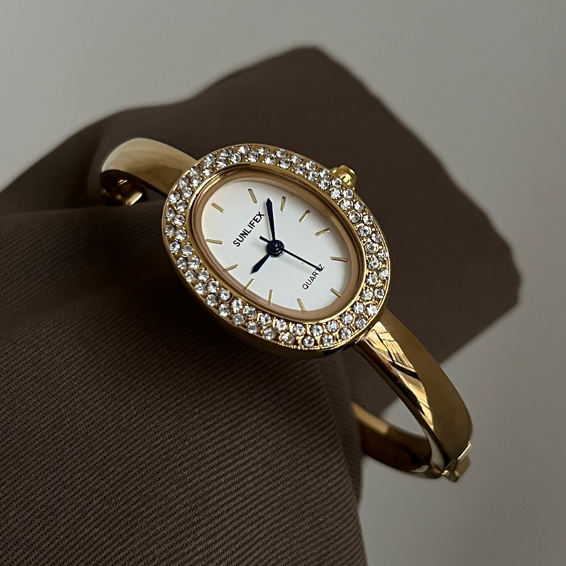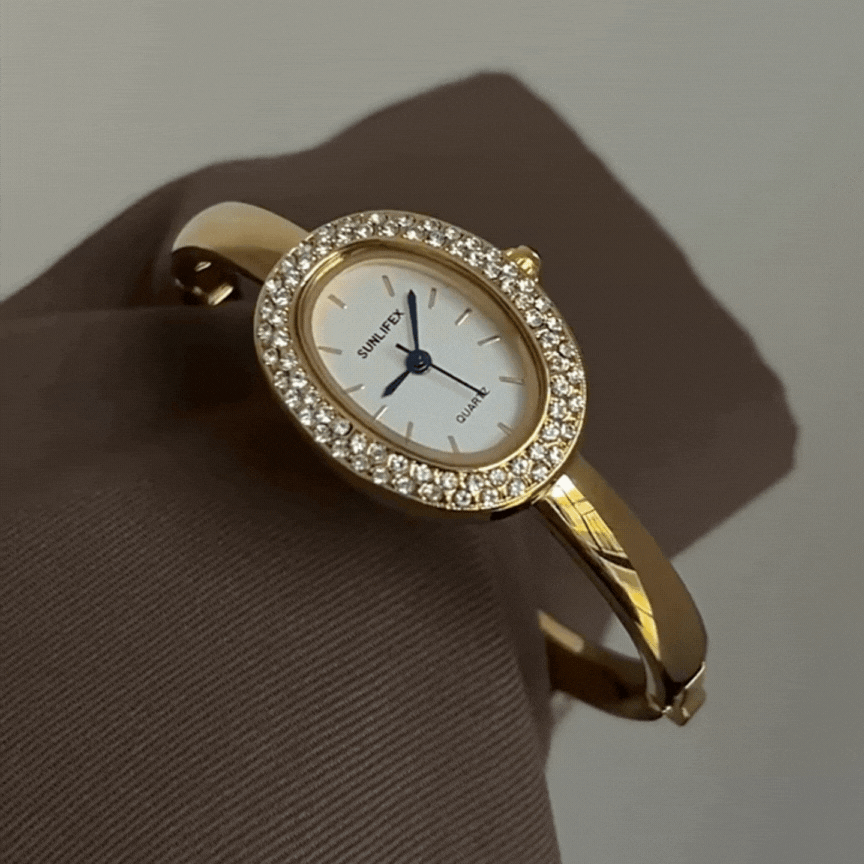Luna Bath Gold - Oval Crystal Bangle horloge met wit gezicht