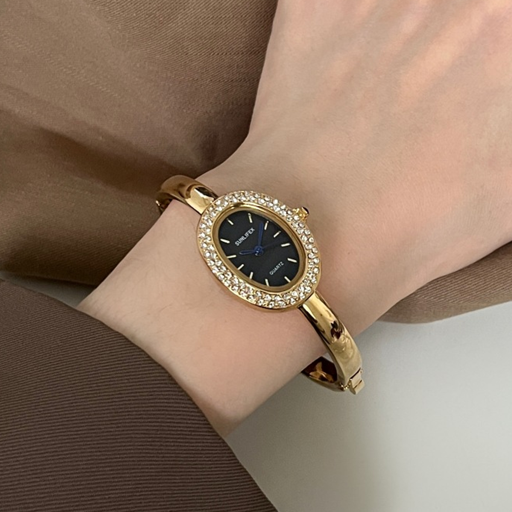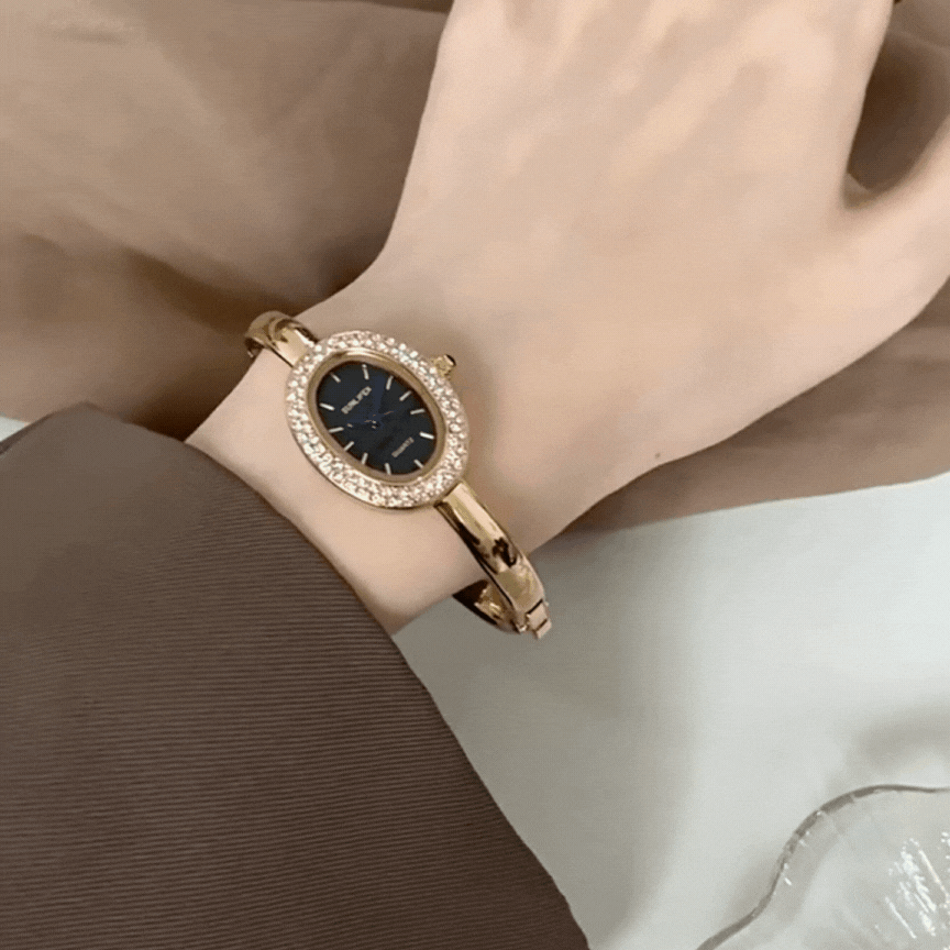 Luna Noir - Gold Oval Bangle -horloge met kristal frame