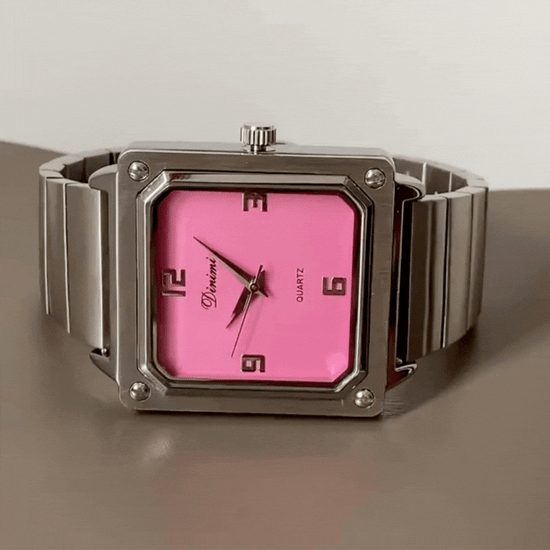 Perfect for making a bold fashion statement, this watch combines Barbie's iconic power pink with minimalist metallic elegance. The wide strap and square dial create a striking modern silhouette that celebrates feminine strength and style.