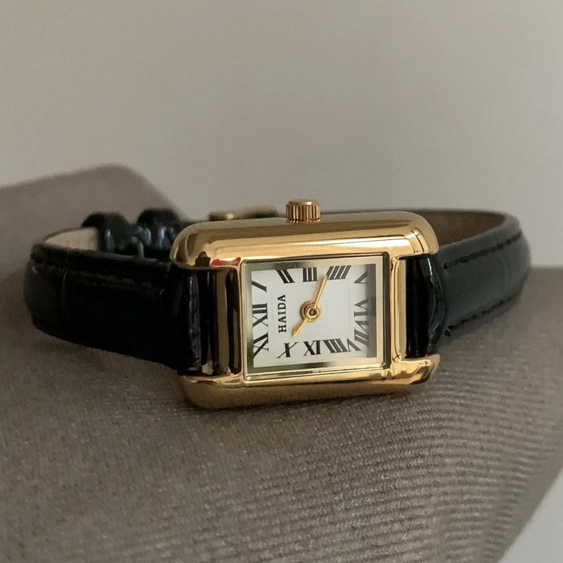 Minimalistisch charm -uurwerk: Black Leather Gold Case Square Quartz Watch