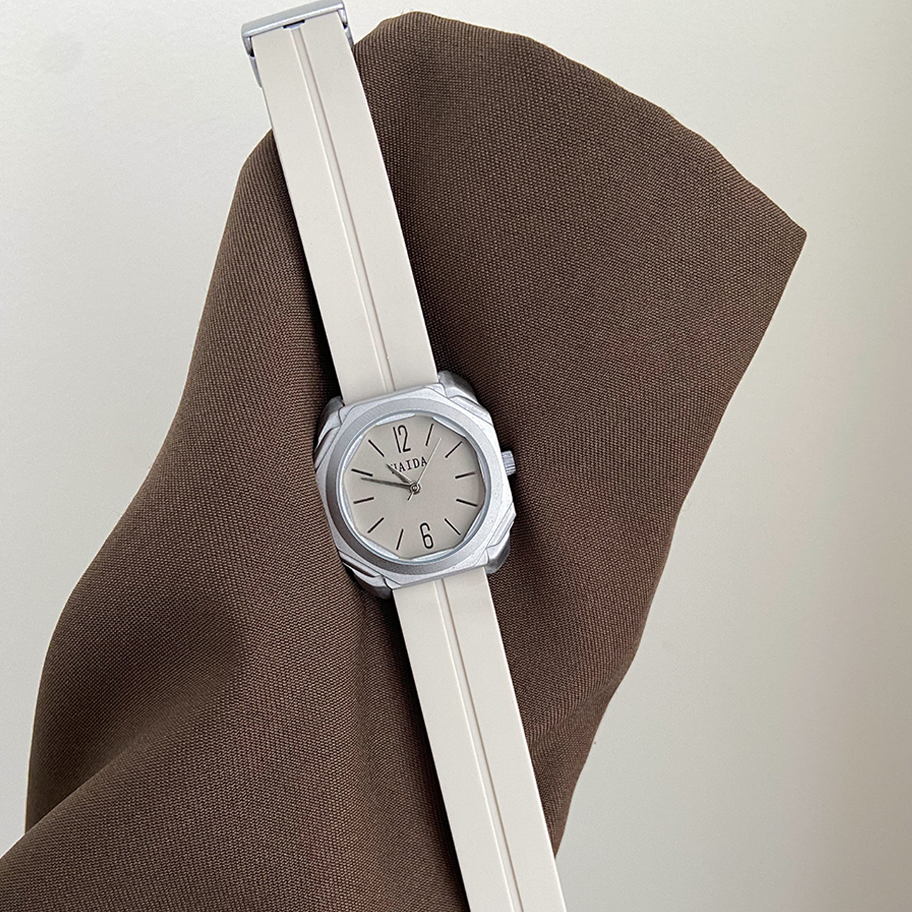 Sporty casual uurwerk: witte magnetische riem en grijze wijzerplaat waterdicht horloge
