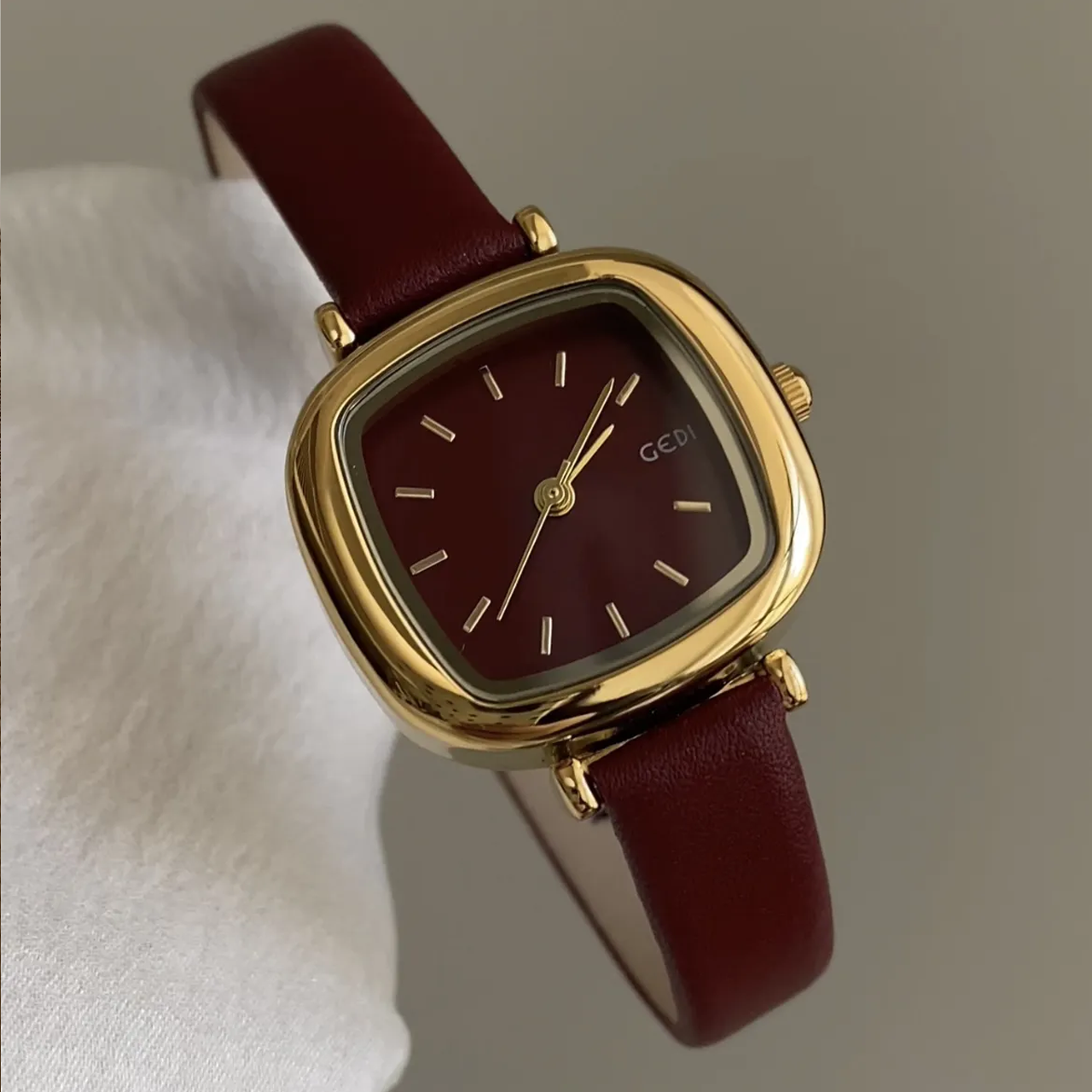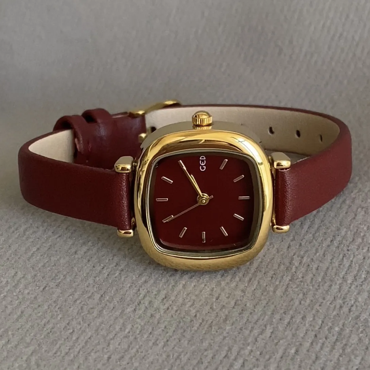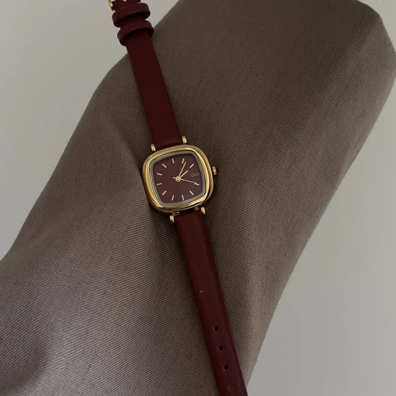 Omarm de feestdagen met dit opvallende rode leren vierkante horloge. Met een opvallende rode band en een strakke vierkante wijzerplaat straalt dit quartzhorloge energie en elegantie uit, waardoor het het perfecte accessoire is voor de jaarwisseling en daarna.