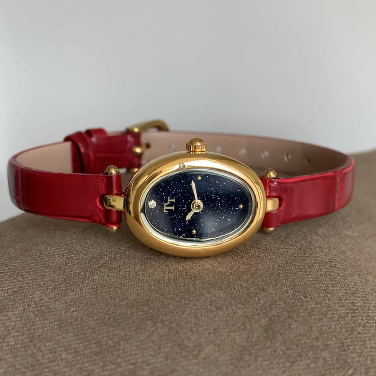 Maak kennis met het Oval Galaxy Quartz-horloge, een mix van tijdloze elegantie en moderne charme. Met een luxe goudkleurige ovale kast en een sterrenhemel-wijzerplaat straalt dit prachtige horloge ingetogen glamour en functionaliteit uit.