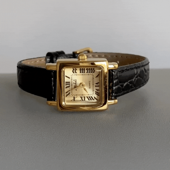 Dit quartzhorloge voor dames is voorzien van een vintage-geïnspireerde gouden vierkante kast, gecombineerd met een soepele zwarte echte leren bandDe minimalistische wijzerplaat en het verfijnde contrast tussen zwart en goud maken het een veelzijdig item – perfect voor zowel werkkleding als vrijetijdskleding.