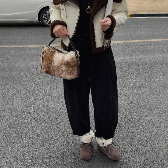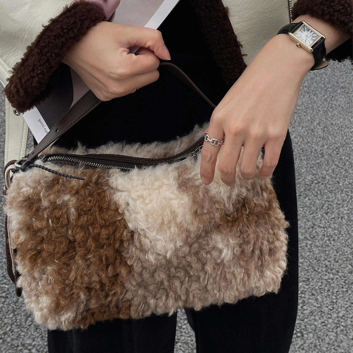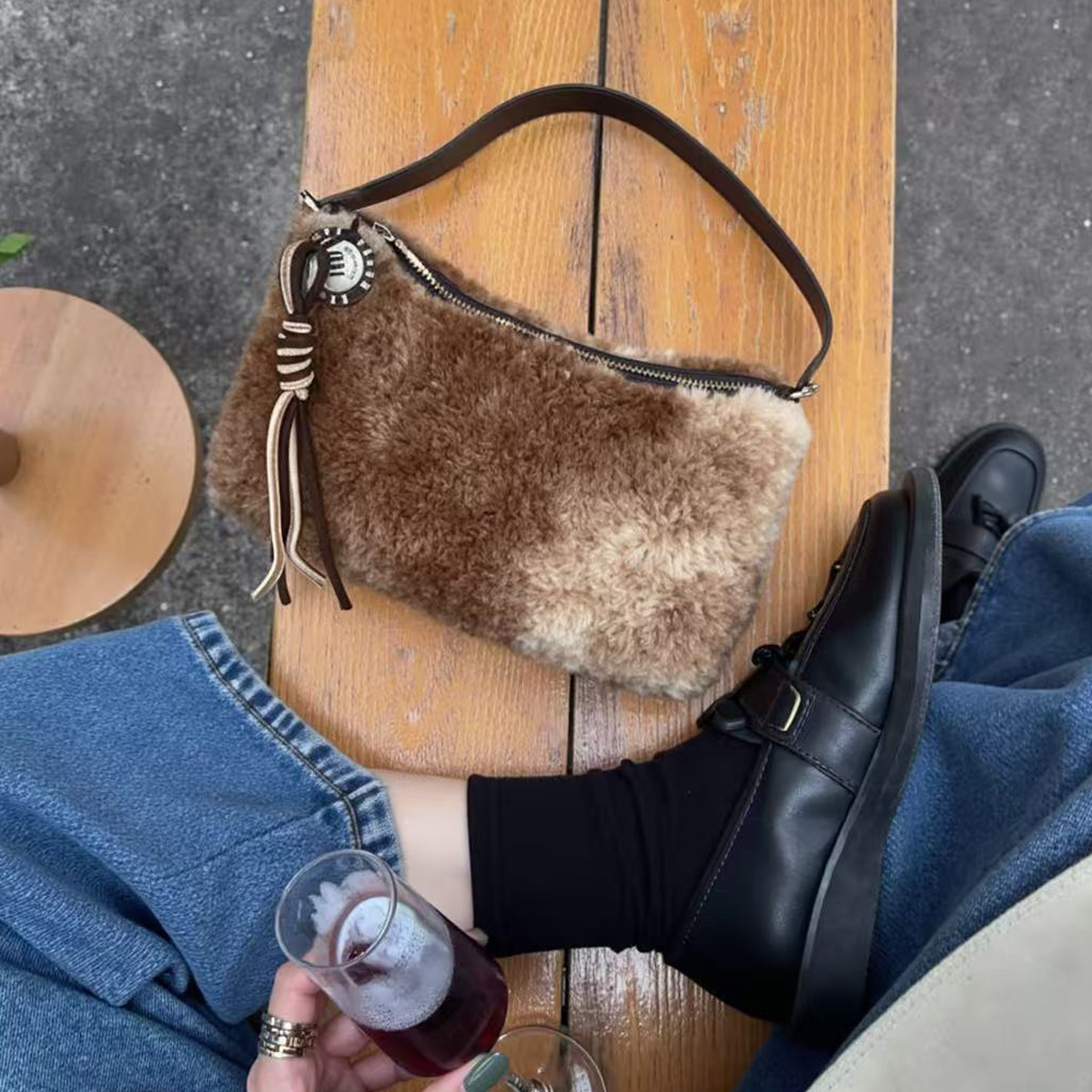 Stay cozy and chic with the Two-Tone Faux Fur Shoulder Bag, the perfect blend of comfort and retro style. Its soft, fluffy texture and warm color contrast make it ideal for fall and winter outfits. With a structured interior that fits your essentials and an adjustable leather strap, this bag easily transitions from casual days to cozy nights out.