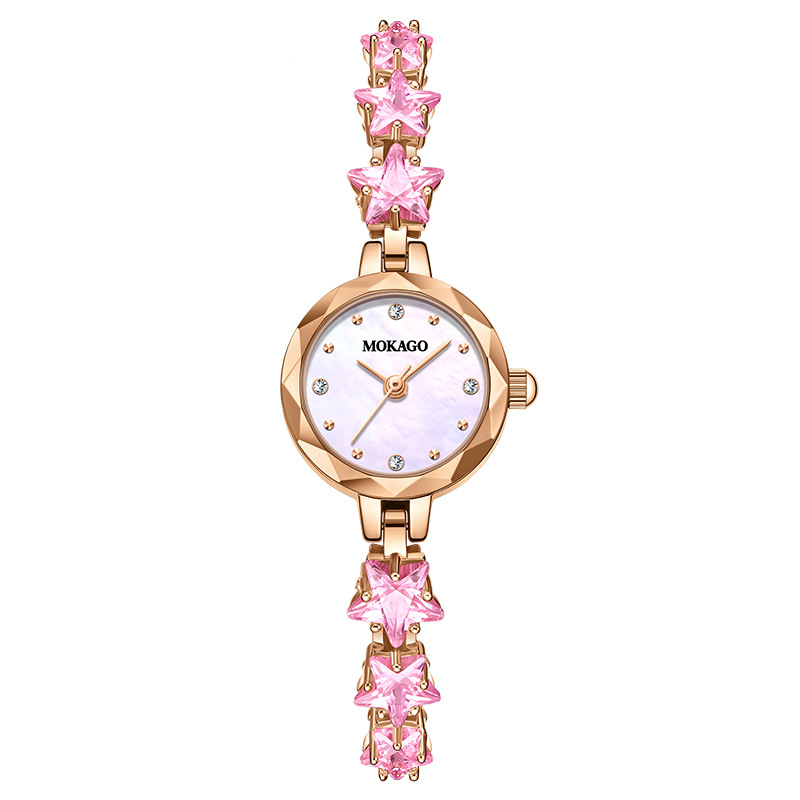 Rose Gold Starry Bracelet Watch: Round Dial Quartz Design
