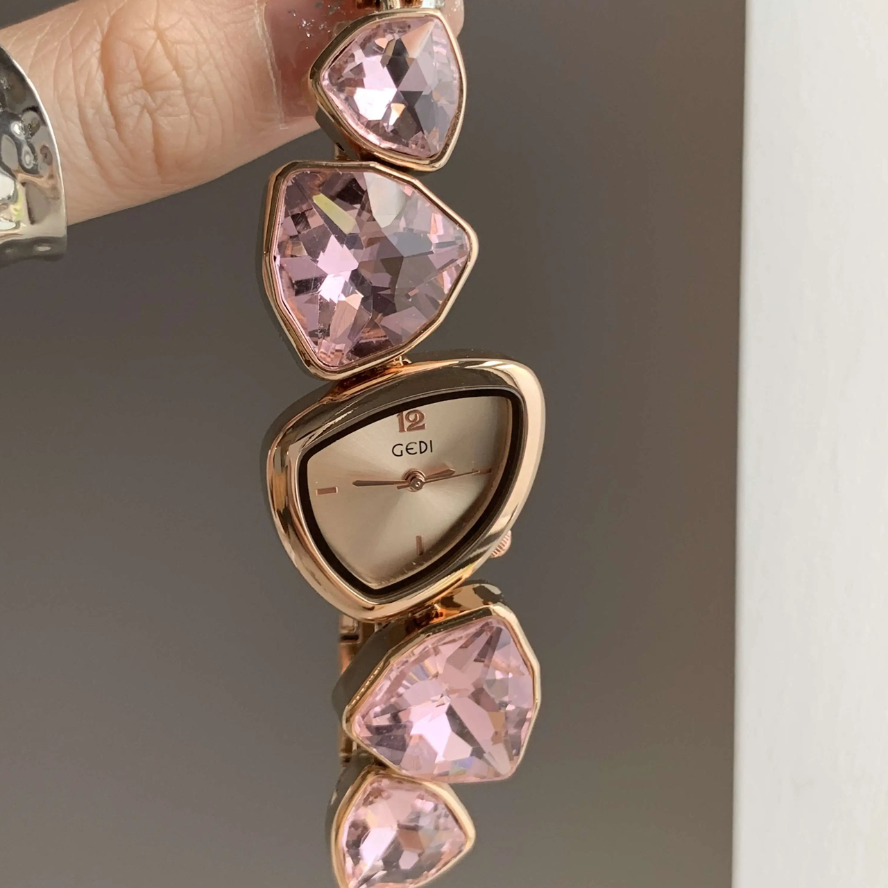Uniek roze gouden wijzerplaat kwarts horloge: onregelmatig ontwerptijdwerk