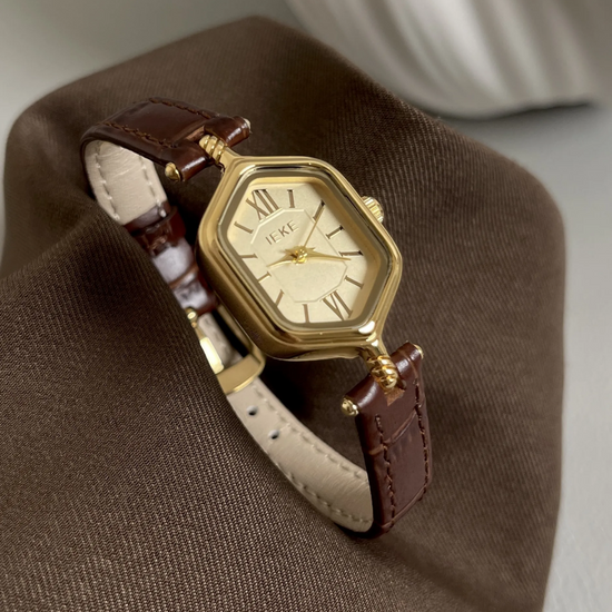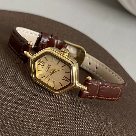 Unique Retro Brown Leather Strap Rhombus Gold Dial Roman Numeral Ladies Quartz Watch - Bohemian Rhyme