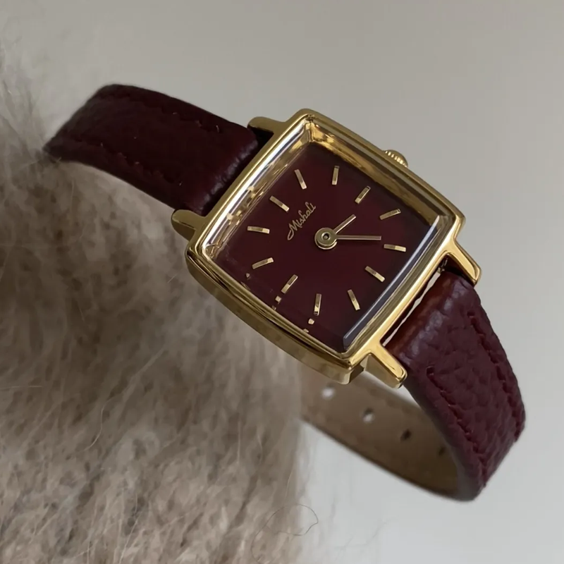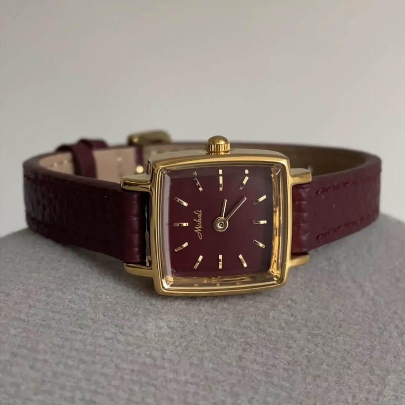 Vierkante elegantie Tijdvoet: lederen kwarts horloge