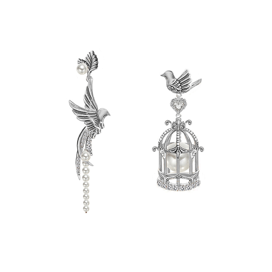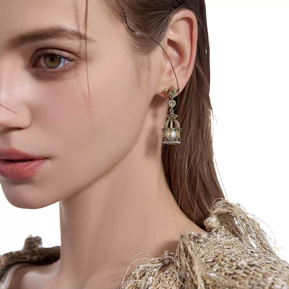 Whimsical yet refined, the Vintage Birdcage Pearl Drop Earrings capture a poetic charm inspired by classic European romance. Featuring an asymmetrical design — one earring with a graceful bird in flight and the other with a delicate pearl inside a golden cage — they bring a touch of storytelling elegance to your look.
