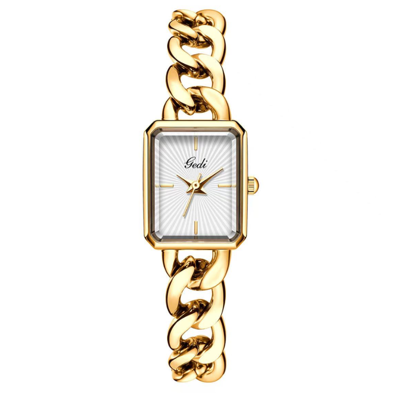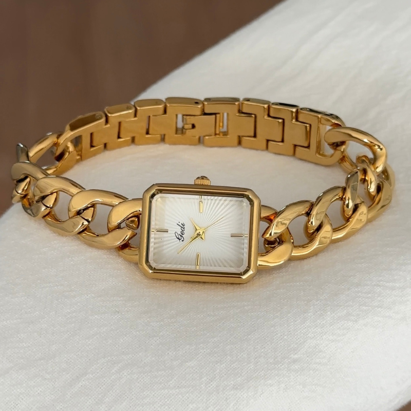 Vintage Elegance Gold Rectangular Watch with Alloy Bracelet & Precision Quartz Movement