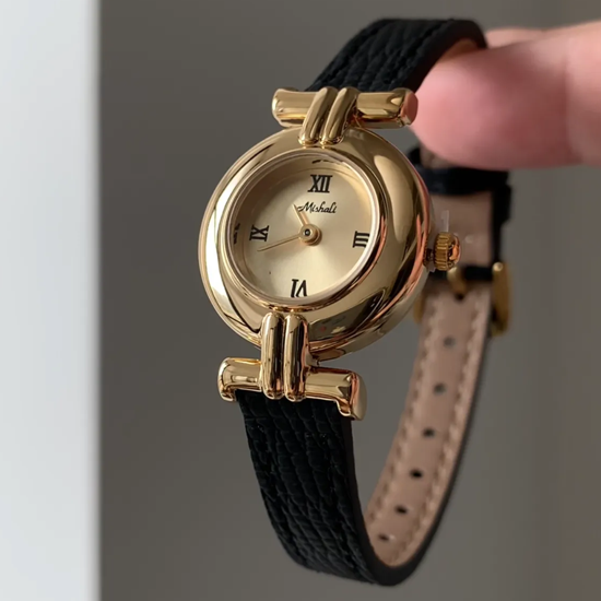 Vintage Grace -uurwerk: Round Leather Quartz Watch