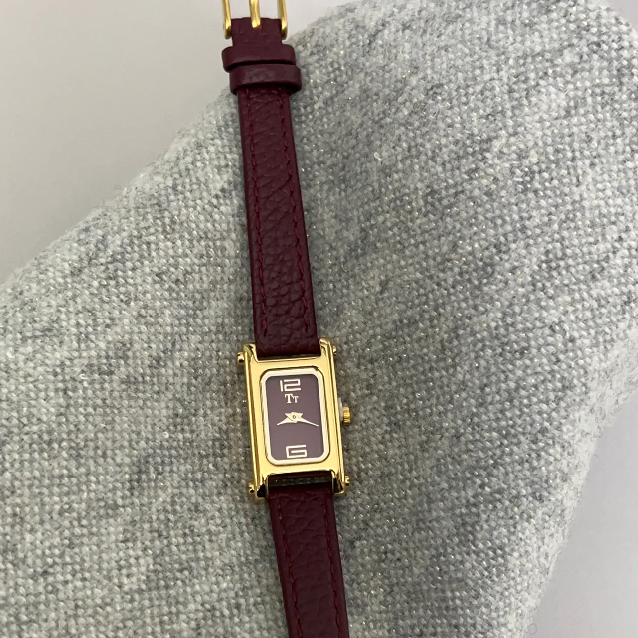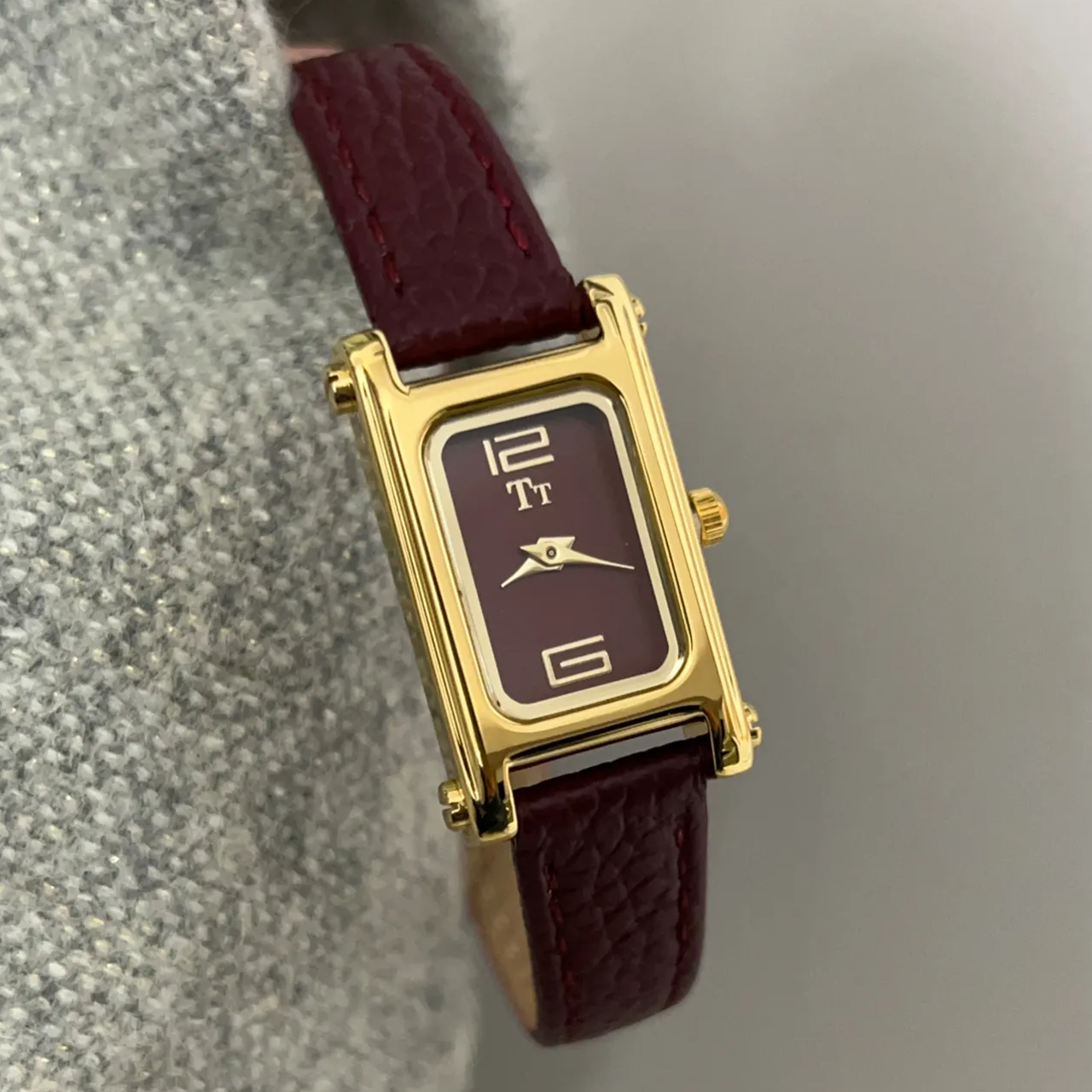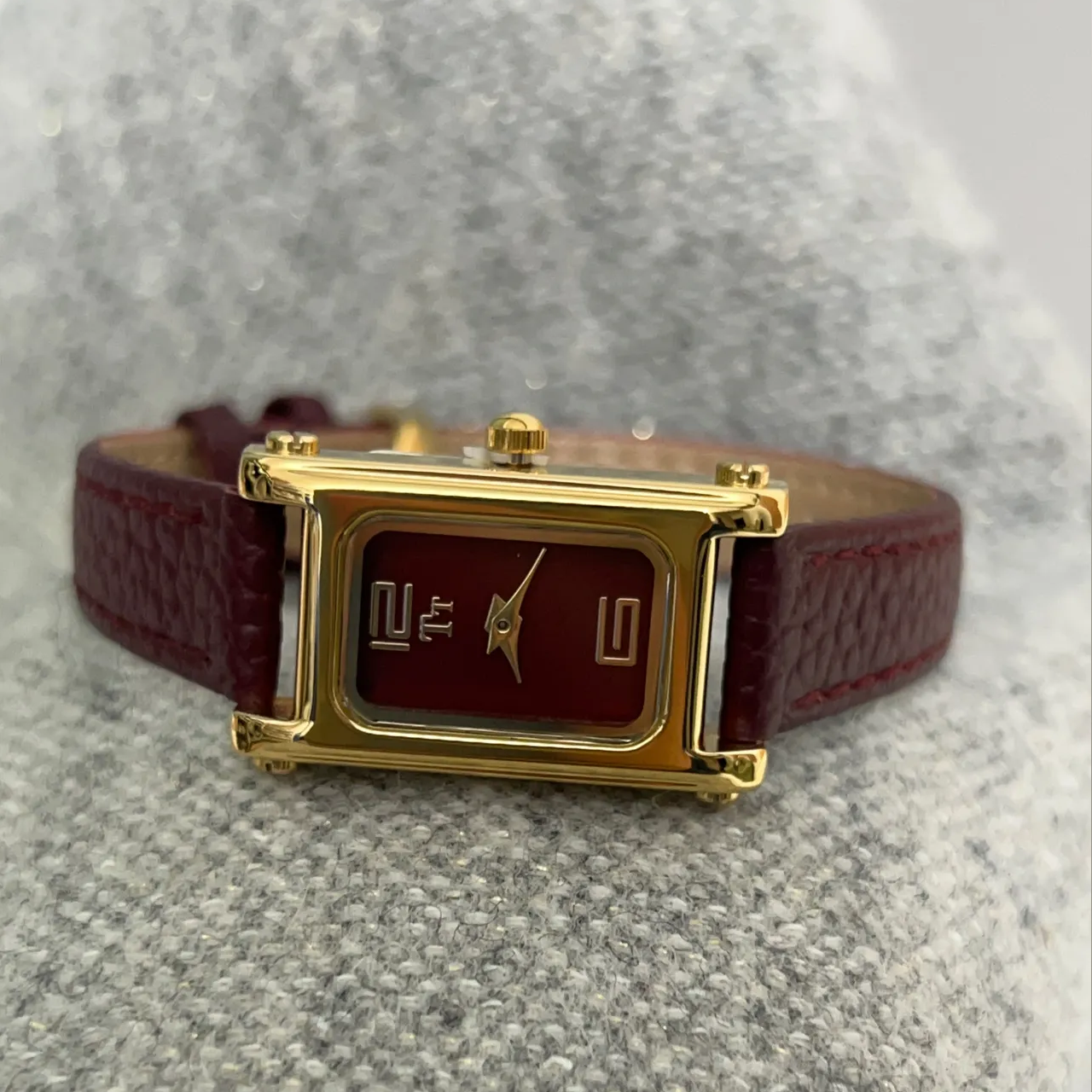Vintage Luxury: Angora Red Leather Square Quartz Watch