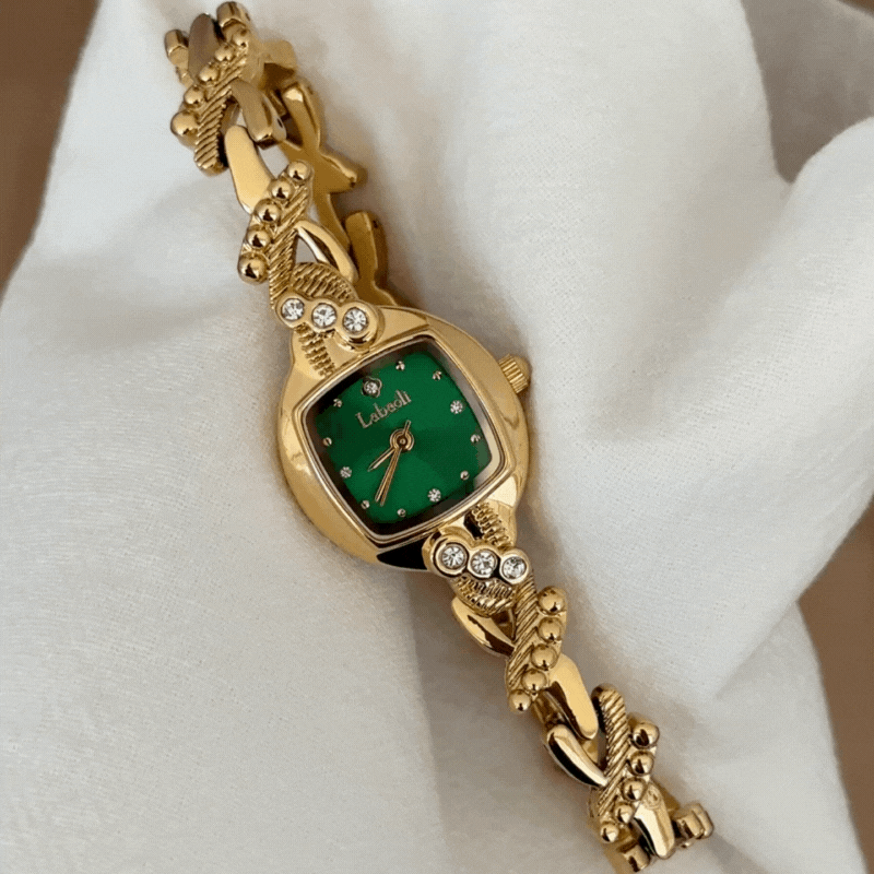 Discover the perfect fusion of vintage artistry and natural inspiration with our Vintage Square Green Dial Watch. Its rich emerald dial, set in a polished gold-tone case, is complemented by an intricately woven bracelet inspired by delicate vines. Meticulously crafted with precise quartz movement, this timepiece balances poetic design with reliable functionality. Ideal for both special events and daily wear, it elevates every moment with enduring elegance and sophisticated storytelling.