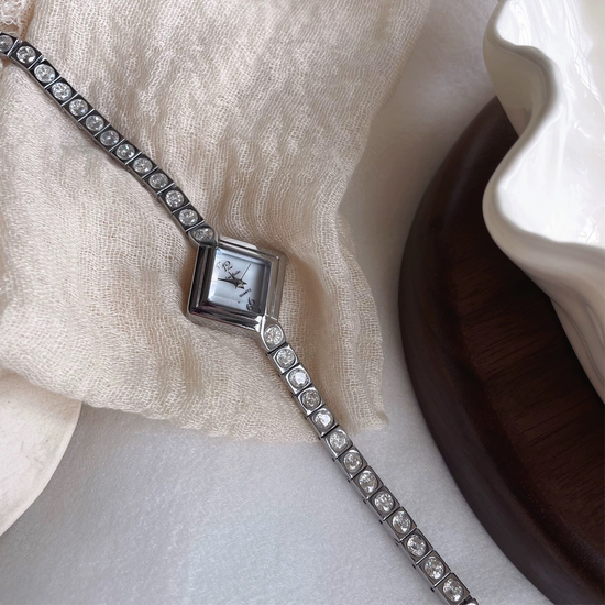Zilveren diamant-geaccentueerde armbandhorloge met witte rhombus wijzerplaat-Elegant kwarts kijken naar dame