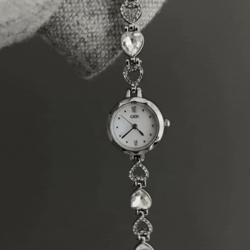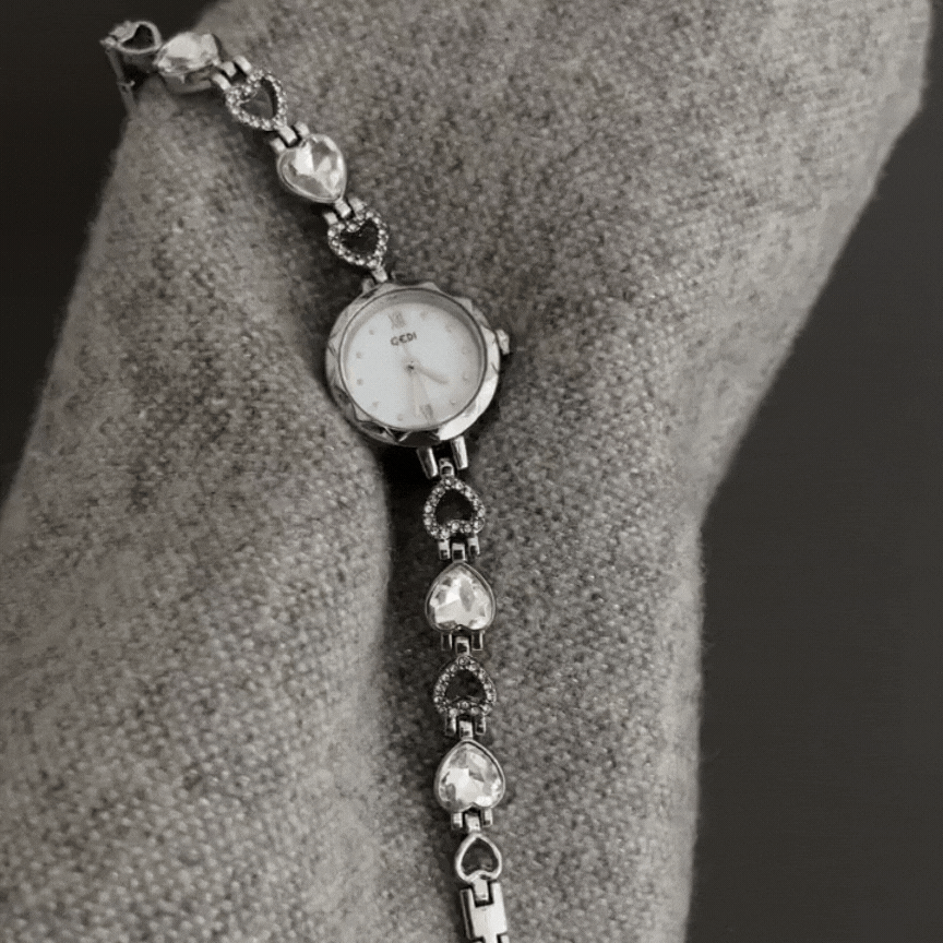 Silver Heart armband met diamanten set witte wijzerplaat dameskwarts horloge