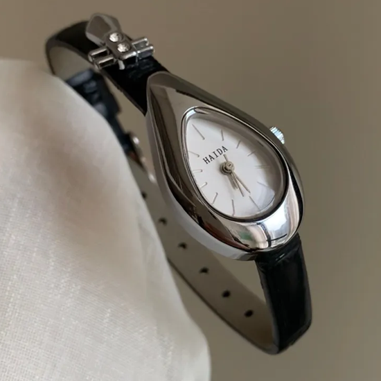 Introductie van de Zilveren Pipa-horloge, een perfecte combinatie van traditionele elegantie en eigentijds design. Met een strakke zilverkleurige pipa-vormige wijzerplaat trekt dit horloge de aandacht met zijn sierlijke rondingen en minimalistische esthetiek. De delicate leren band voegt een verfijnde touch toe, terwijl het nauwkeurige quartz-uurwerk zorgt voor betrouwbare tijdwaarneming. Dit horloge is een tijdloos accessoire en ideaal voor wie zowel stijl als eenvoud waardeert in het dagelijks leven.