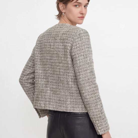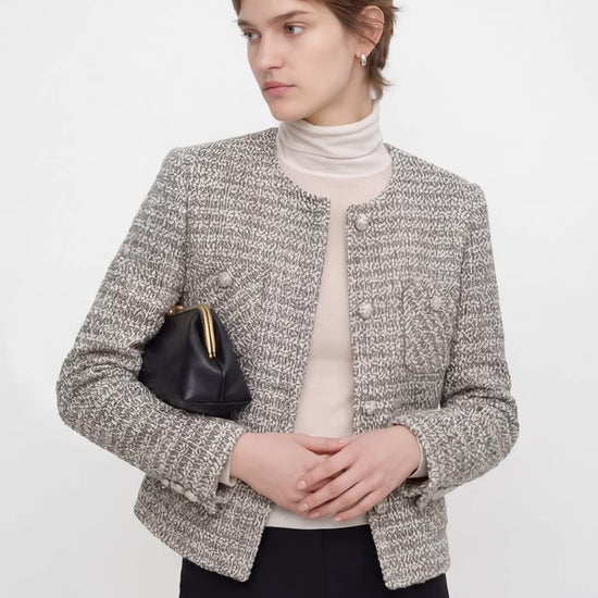 This jacket redefines modern sculptural luxury by merging the iconic "Little Fragrance" aesthetic with premium natural fibers. It offers a fluid transition between statuesque professional poise and effortless editorial chic.