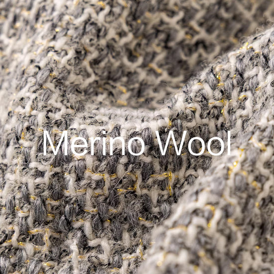 - Premium Merino Wool fabrication featuring a multi-dimensional salt and pepper weave for superior warmth and a luxurious tactile feel.