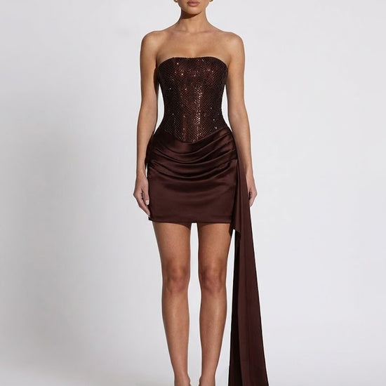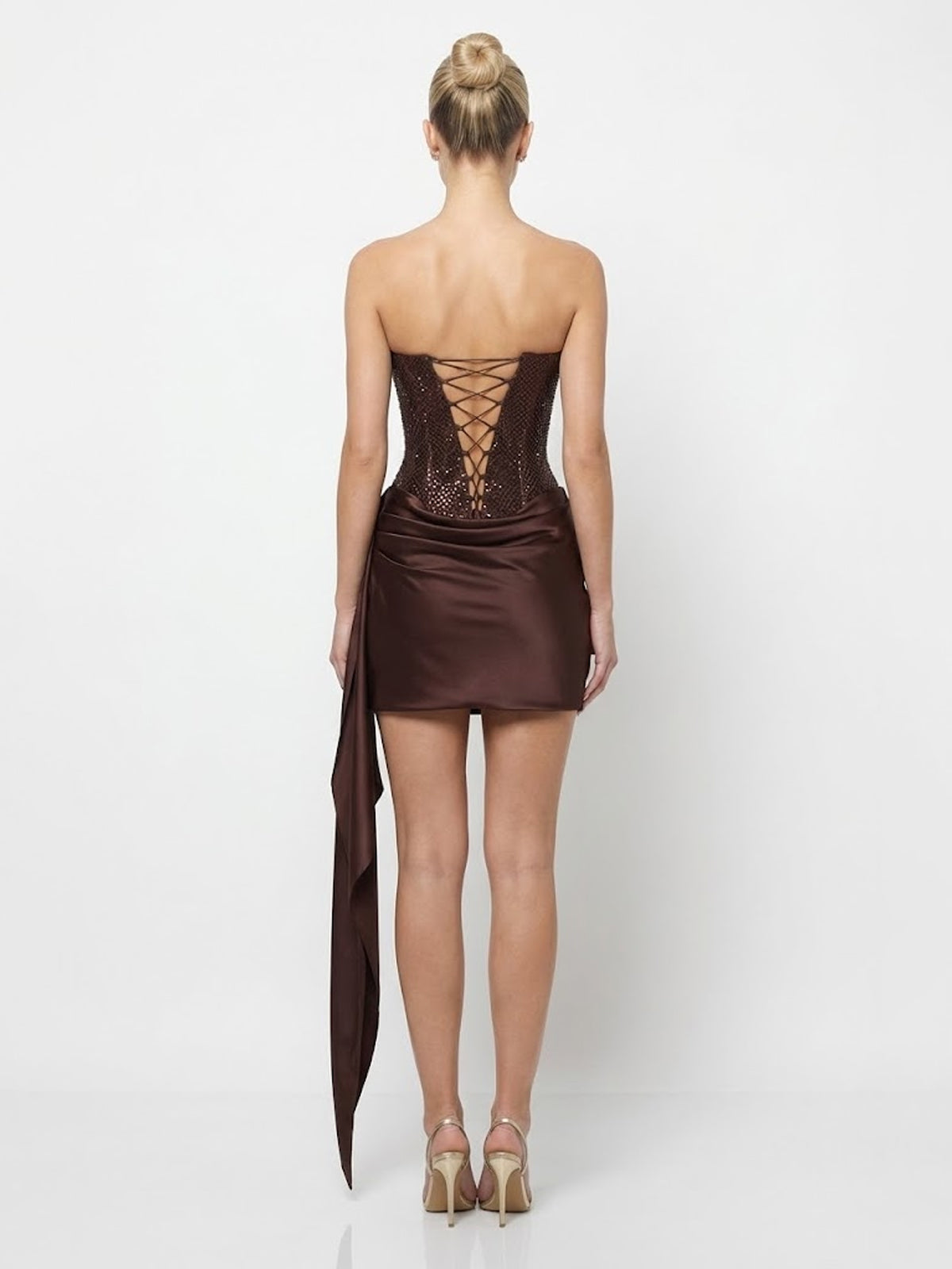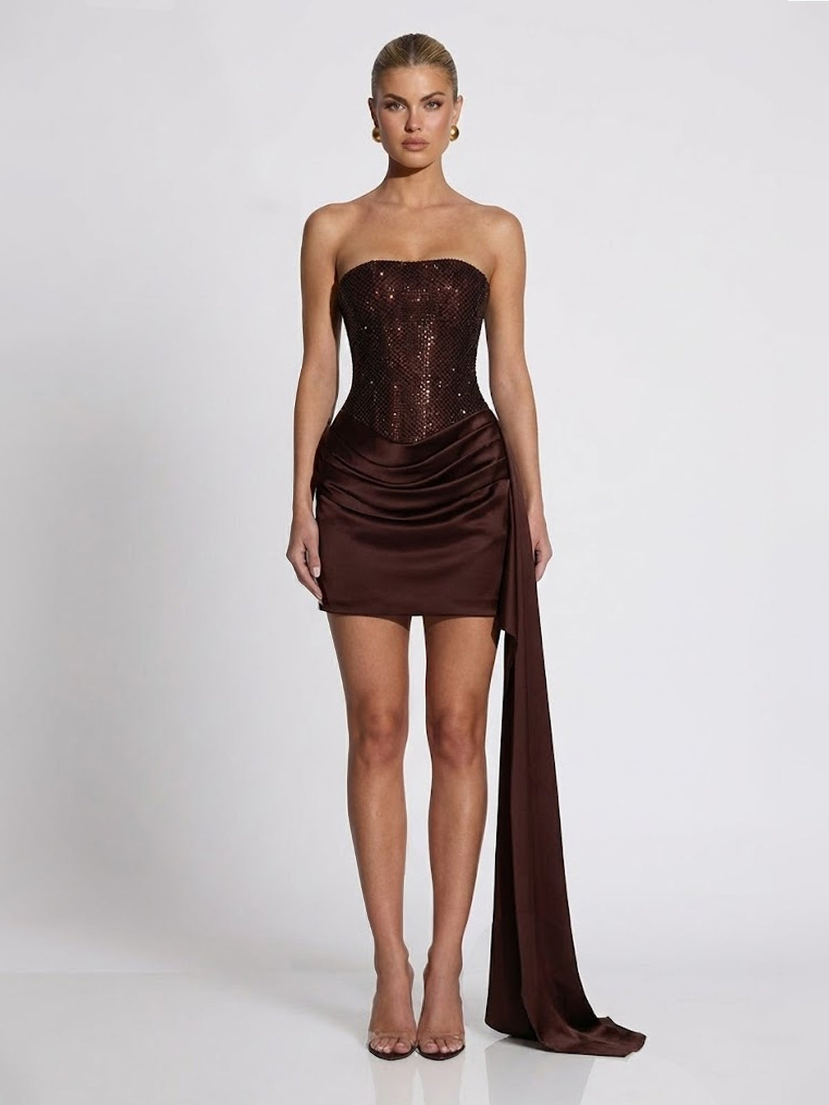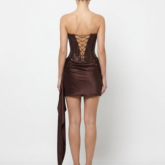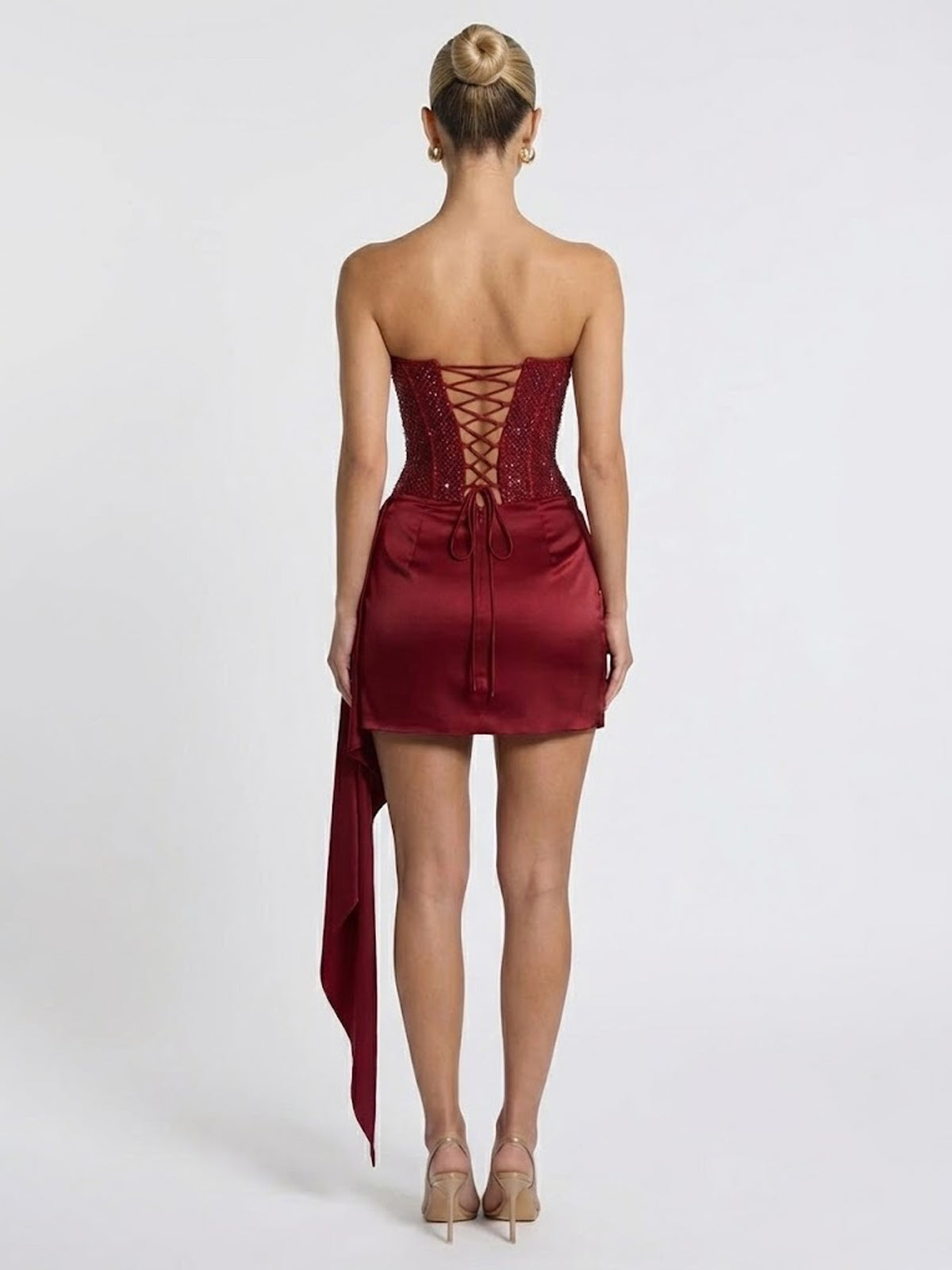 Shimmering Corset Bodice Lace-Up Back Draped Mini Dress