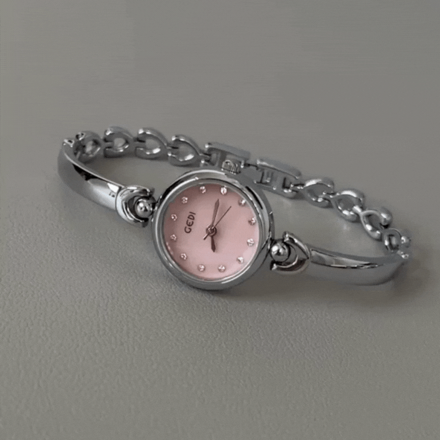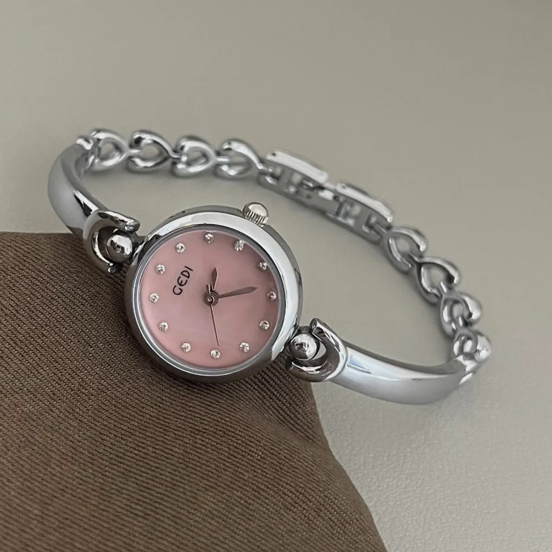 Silver Bangle Style Round Pink Dial Women's Quartz Watch