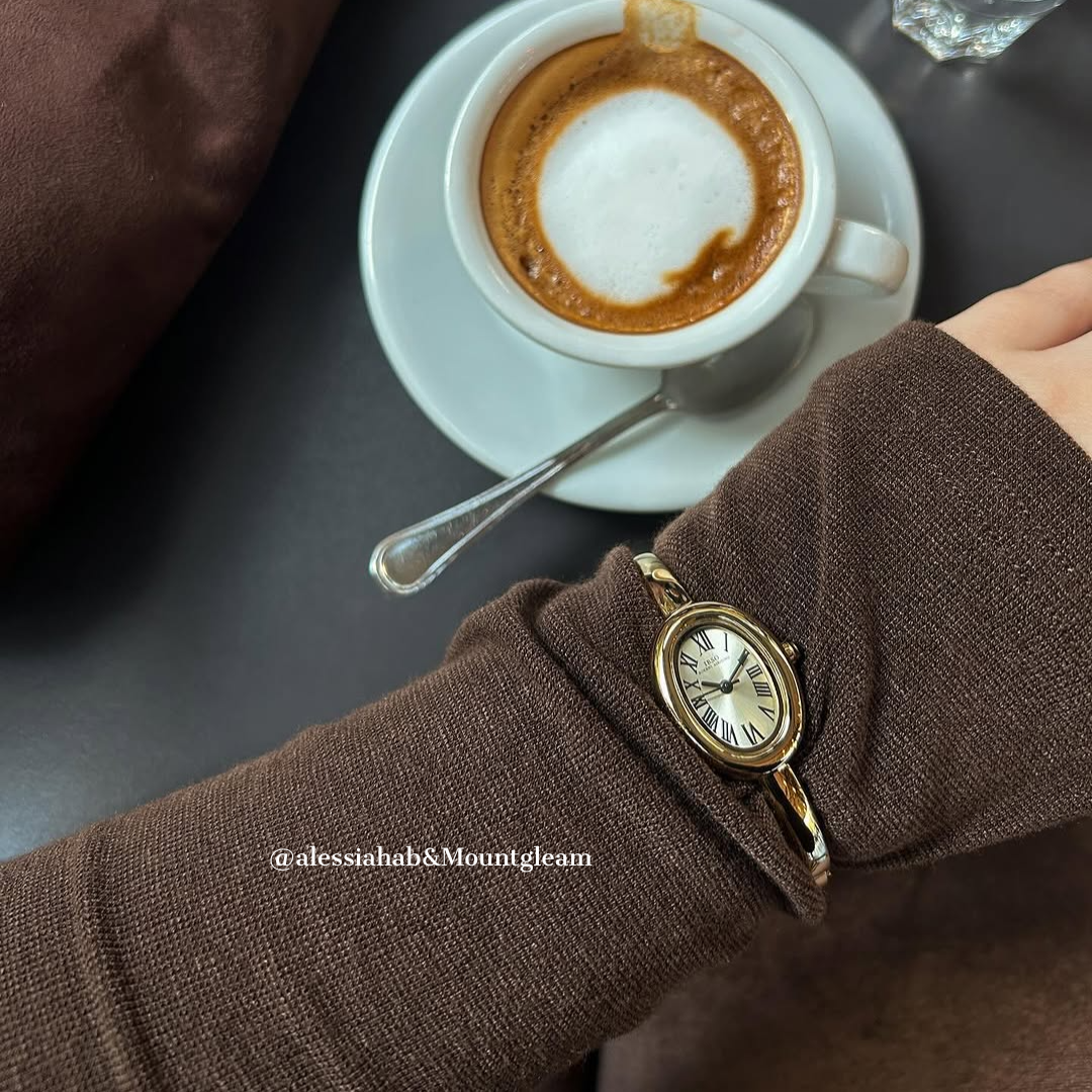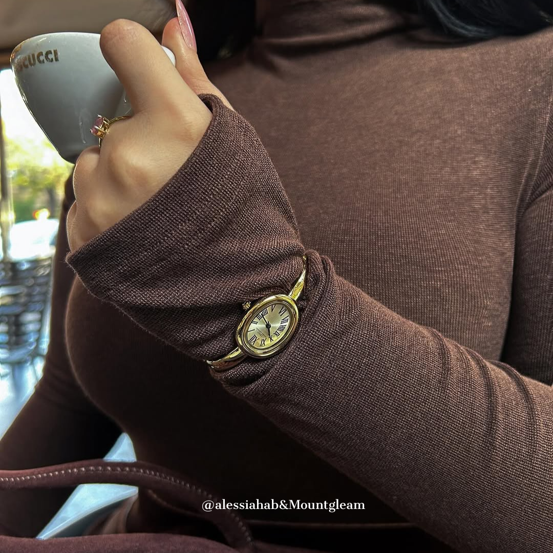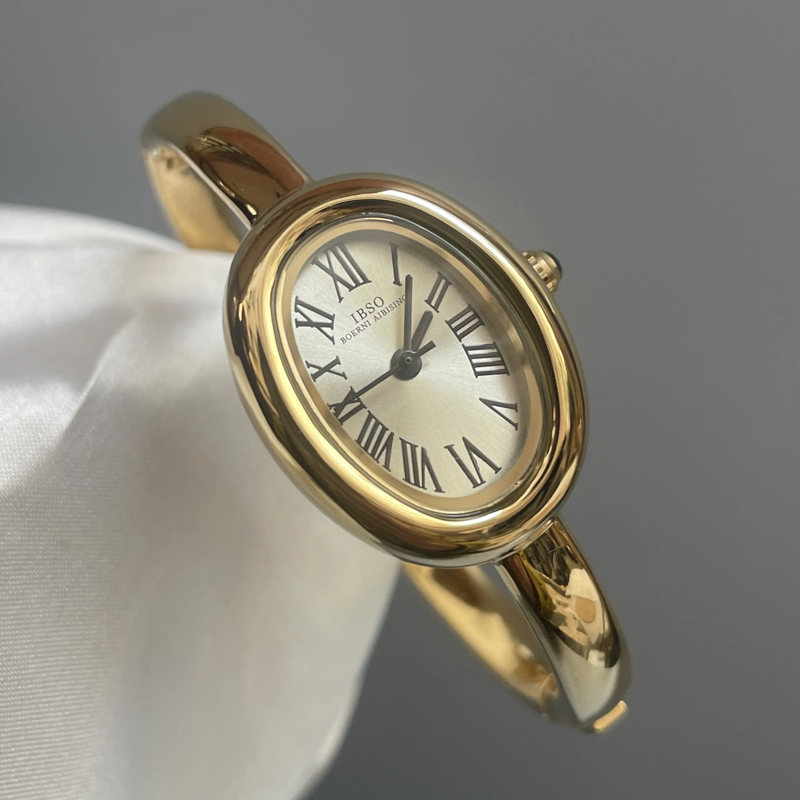 Aura Curve – Gold Bangle Watch with Sculpted Oval Dial