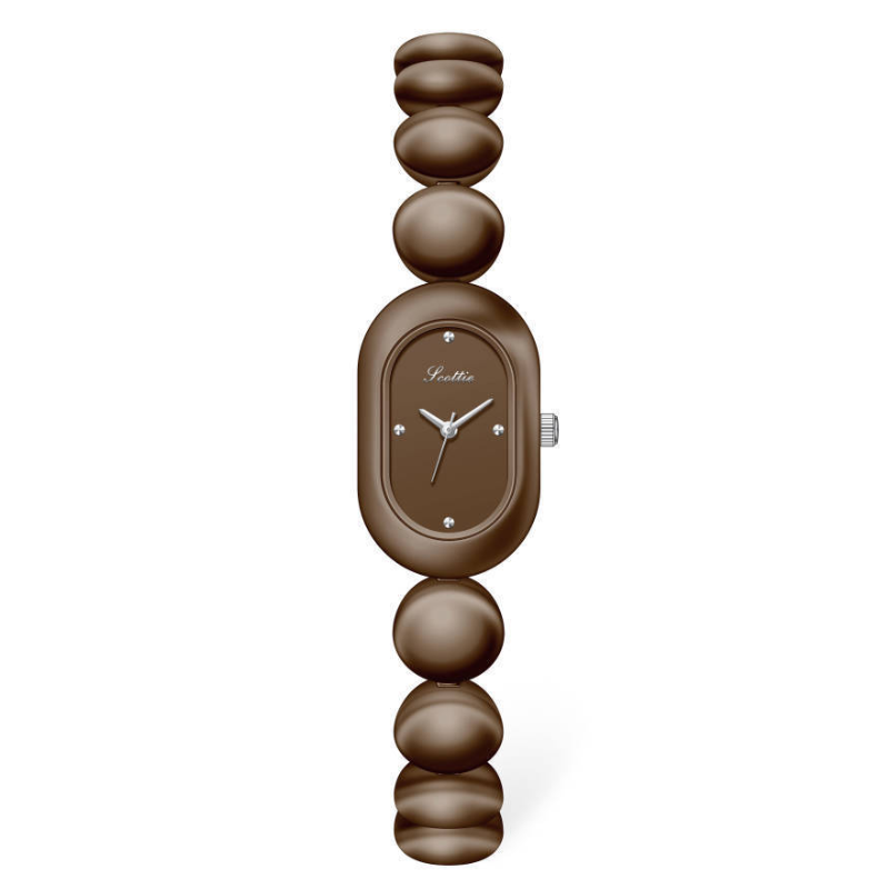 This sophisticated timepiece showcases a warm brown oval dial paired with a matching stainless steel beaded bracelet, creating a seamless fusion of elegance and contemporary style. Engineered with precise quartz movement and designed for versatile wear, it serves as an ideal accessory that transitions effortlessly from professional settings to everyday occasions.