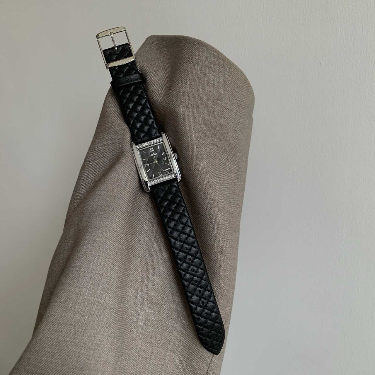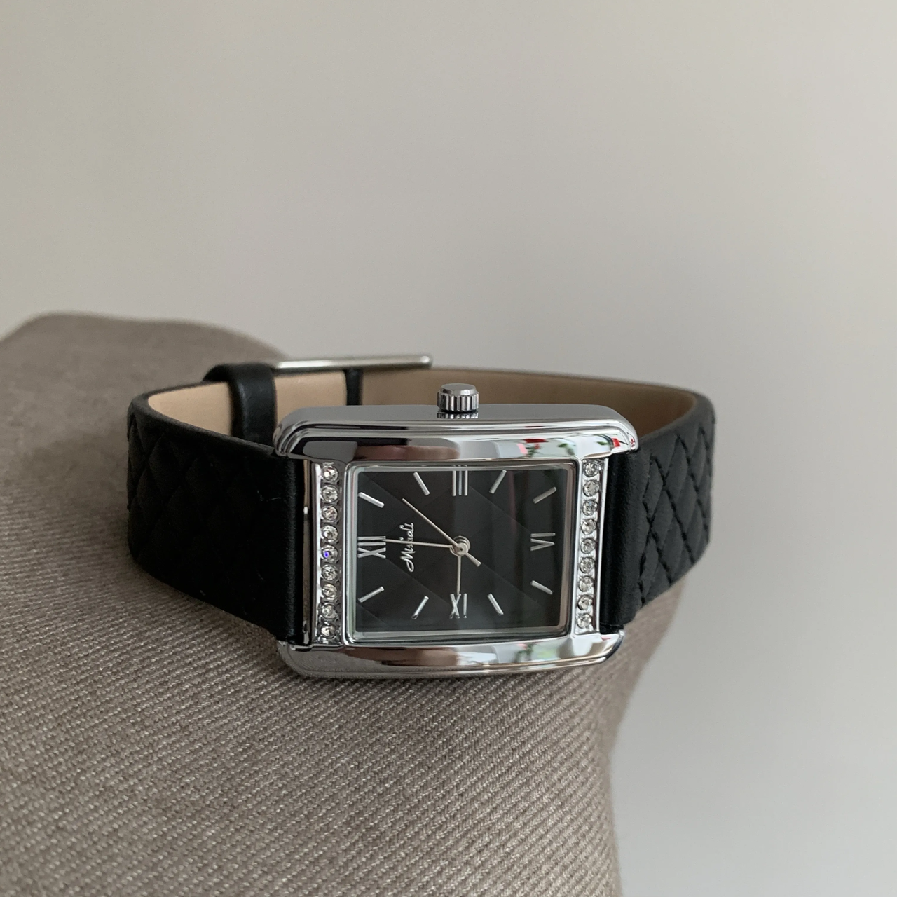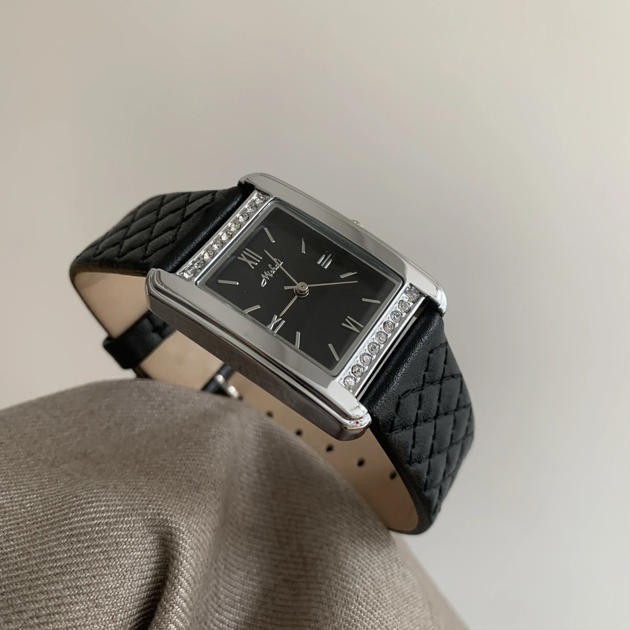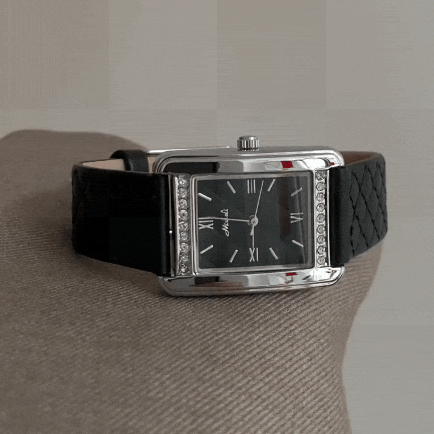 Introducing the Chic Elegance Timepiece, where luxury meets modern sophistication. This exquisite watch features a sleek black leather strap and a shimmering silver case, adding a polished touch to your look. The bold black dial, paired with elegant diamond accents, enhances the refined aesthetic, while the small yet impactful design exudes chic, timeless elegance. Ideal for daily wear, this Chic Elegance Timepiece embodies a perfect balance of fashion-forward style and sophisticated charm, making it the perfect accessory for both work and leisure.
