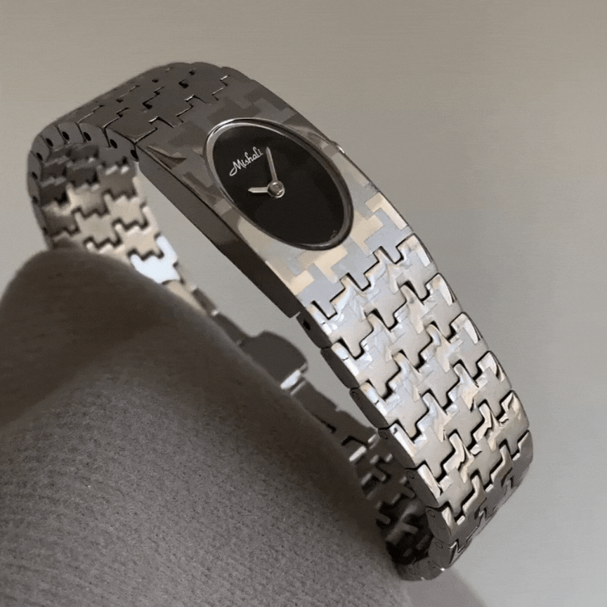 Introducing the Chic Houndstooth Timepiece, a perfect blend of elegance and modern sophistication. Featuring a sleek black dial complemented by a silver houndstooth-patterned steel bracelet, this watch exudes a bold yet refined aesthetic. Designed for those with a taste for fashion-forward accessories, it’s the ideal statement piece for both professional and casual occasions.