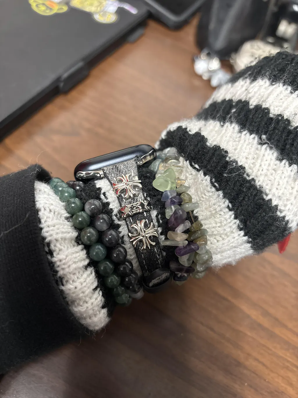 This Apple Watch band is crafted from washed black denim with bold chrome cross-inspired detailing, bringing an edge of street style and rebellious flair to your everyday tech. With a soft worn-in texture and signature gothic metal accents, it’s the perfect accessory for those who wear attitude on their sleeve.