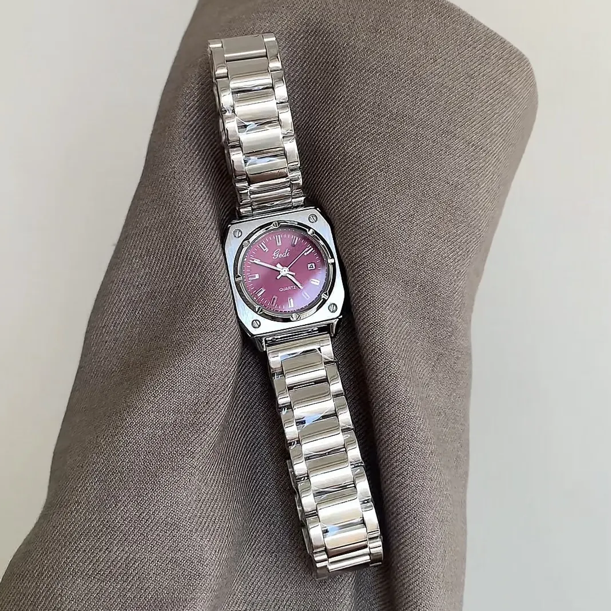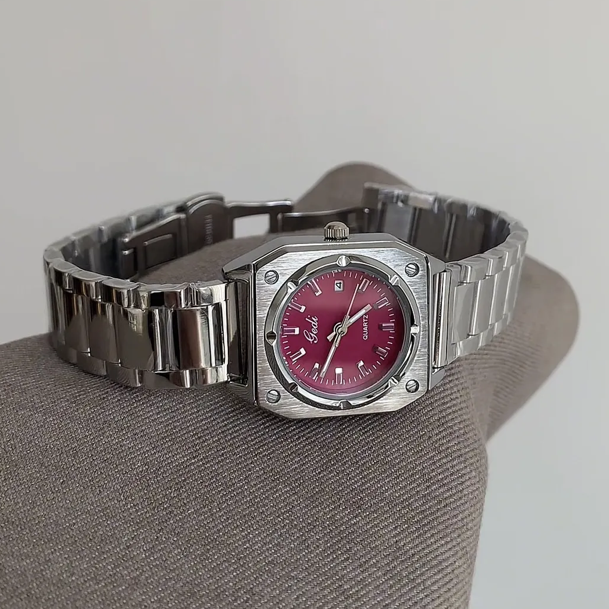 Make a bold statement with this Silver Strap Red Dial Women's Quartz Watch. Combining a vibrant red dial with a sleek silver strap, this watch is the perfect blend of modern style and classic elegance. The striking red face adds a pop of color to your wrist, while the durable silver band ensures a comfortable and secure fit. Powered by precise quartz movement, this watch offers reliable timekeeping and is ideal for everyday wear or special occasions. Whether you're dressing up or keeping it casual, this watch is a versatile accessory that complements any outfit.