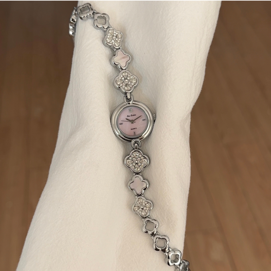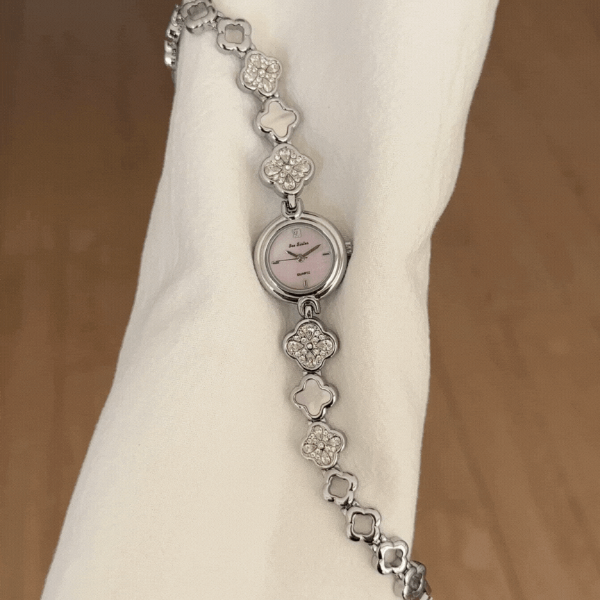 The Clover Charm Quartz Watch is a delicate blend of elegance and good fortune. Featuring a refined silver clover-link bracelet and a luminous pink mother-of-pearl dial, this timepiece radiates feminine charm and timeless sophistication. Designed for women who love graceful details, it’s the perfect accessory for both everyday wear and special occasions.