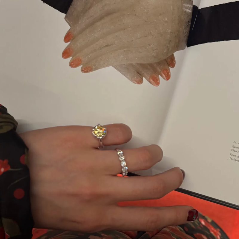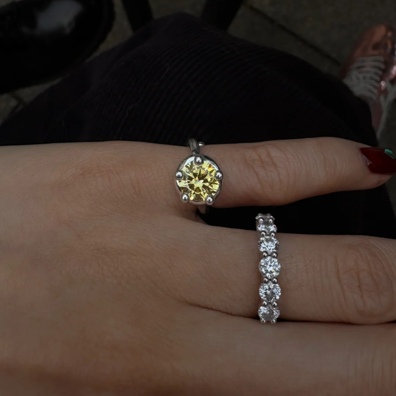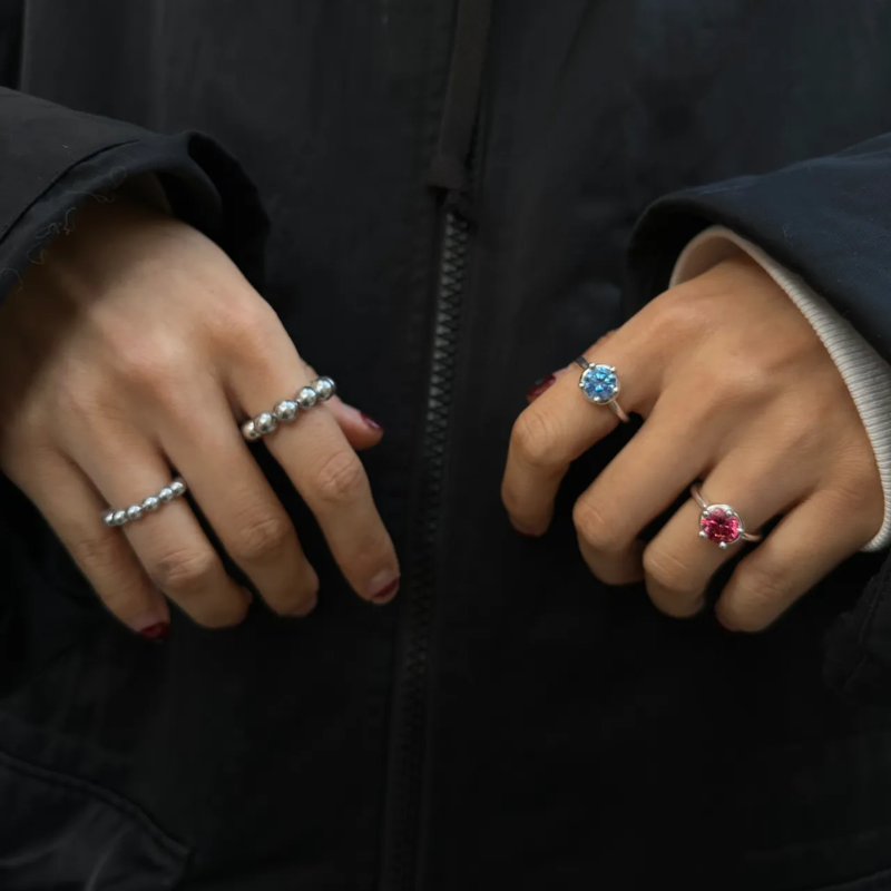 Designed to shine with or without real diamonds, this colorful lab diamond sterling silver ring delivers exceptional brilliance and refined quality. Crafted from solid S925 sterling silver, it features a sleek adjustable open design that fits effortlessly on any finger — from pinky to index.